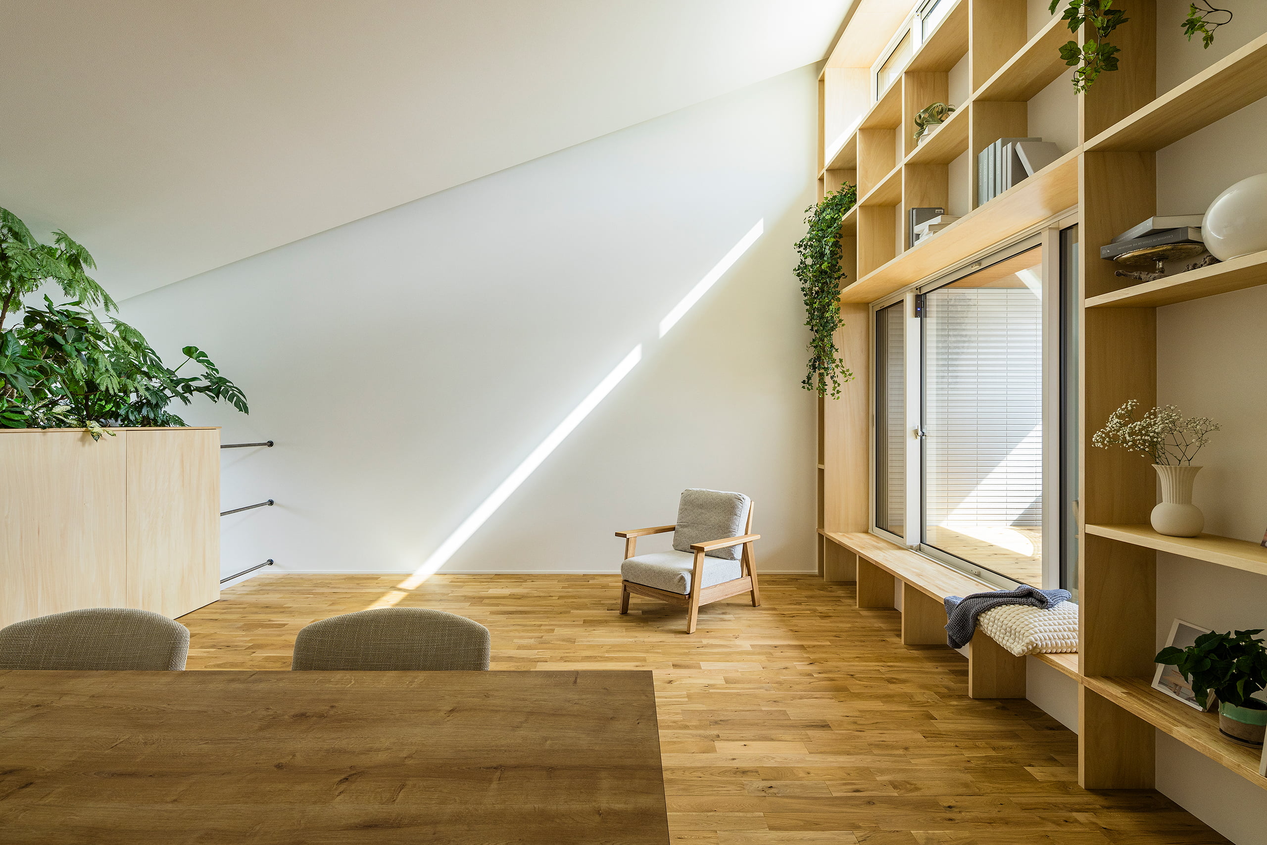 どの場所にいても、やわらかい間接光を感じられる計画です。