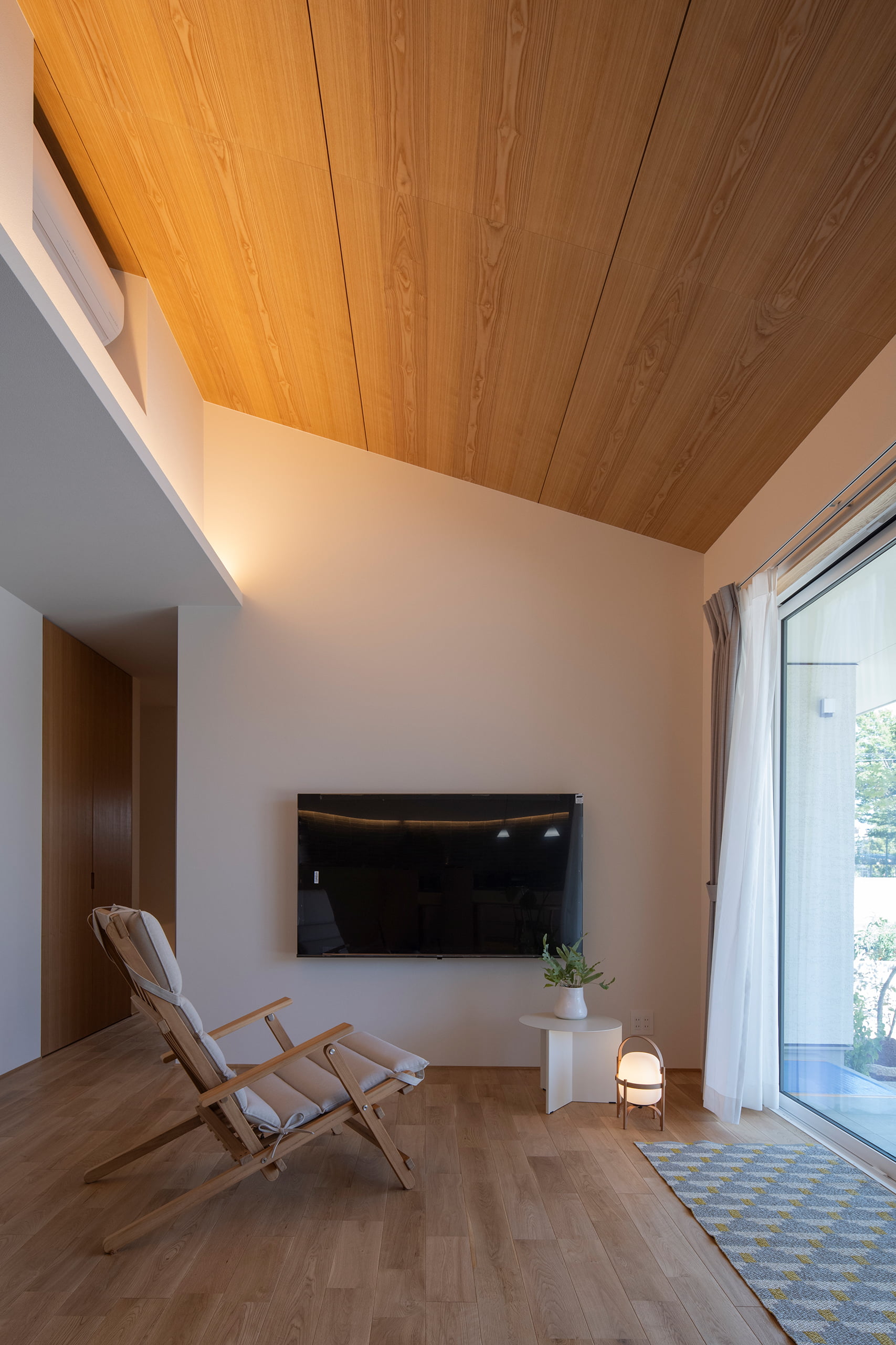 傾斜天井面を反射板として活かすことで、やわらかな光が空間全体を包み込むように広がる設計とした。