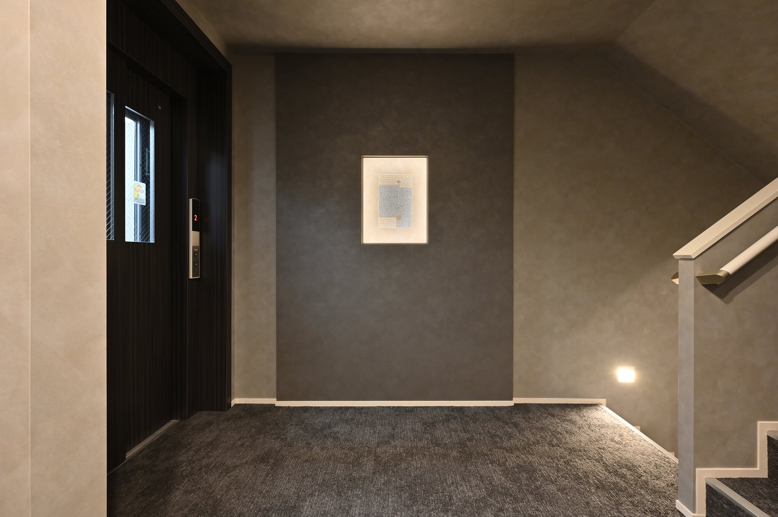 ホールの照明は、ニッチと各階に配されたアートワークを引き立てる間接光のみで構成。