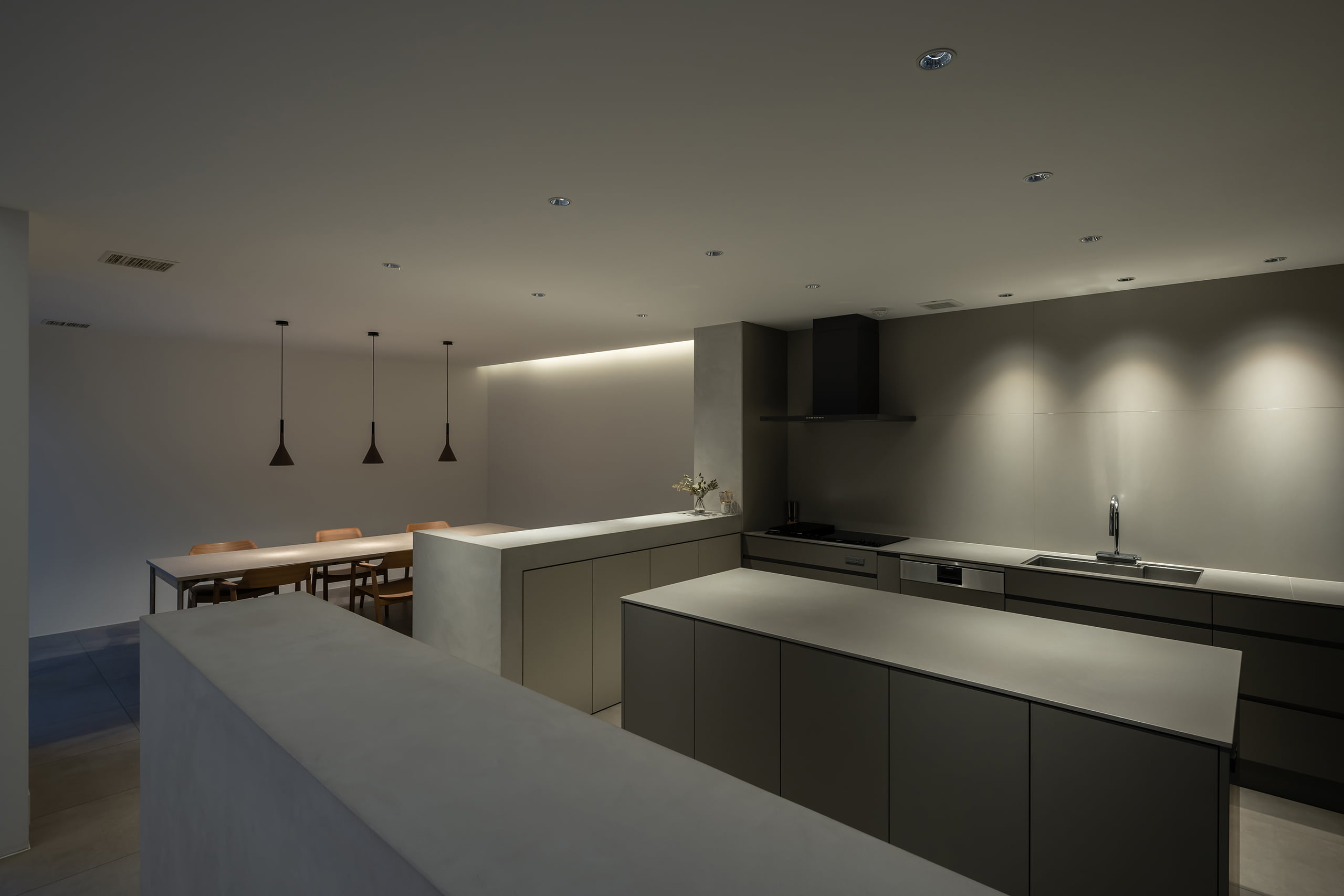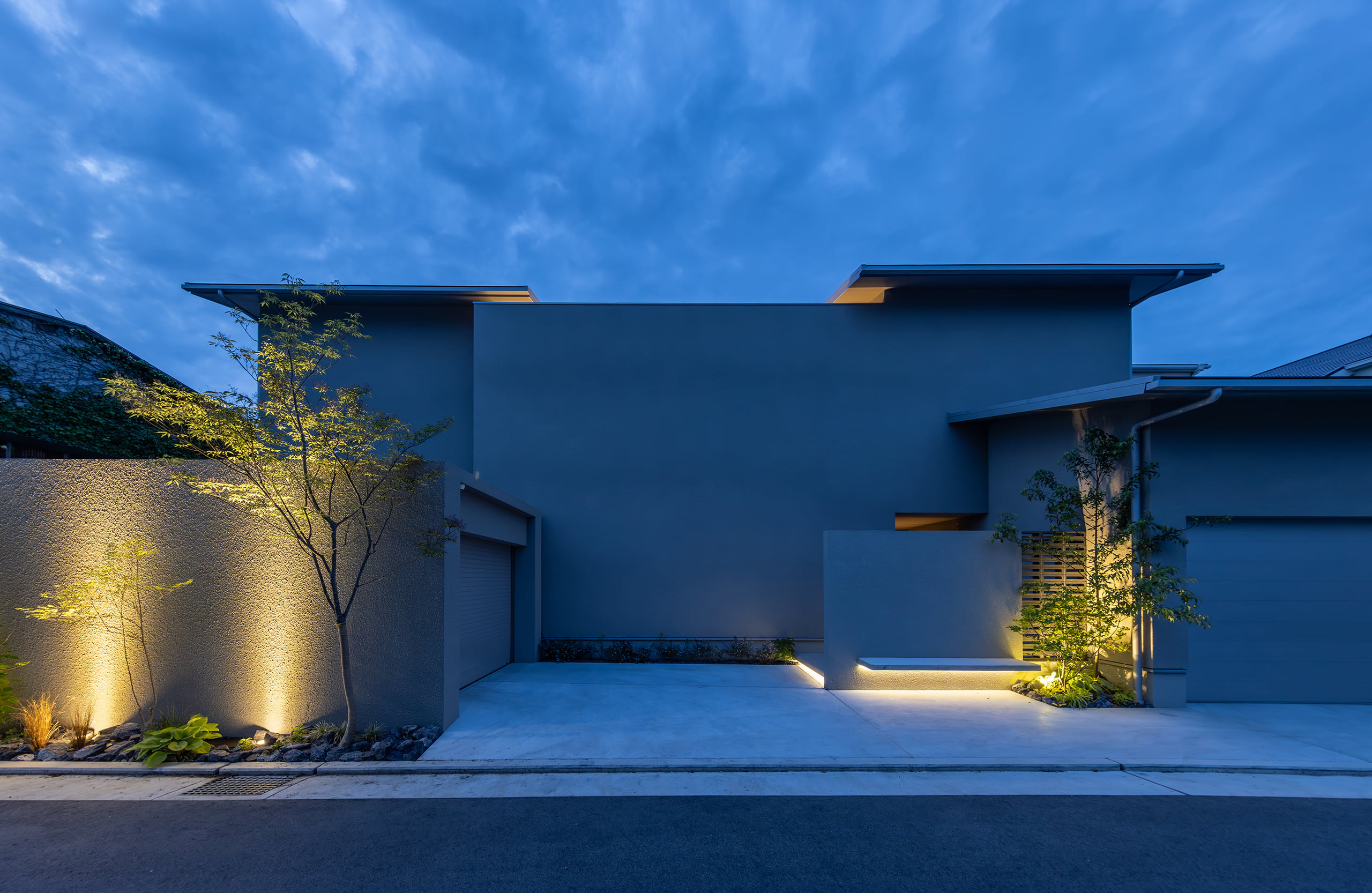 玄関は空間の入隅をなぞるようにライン照明で計画。