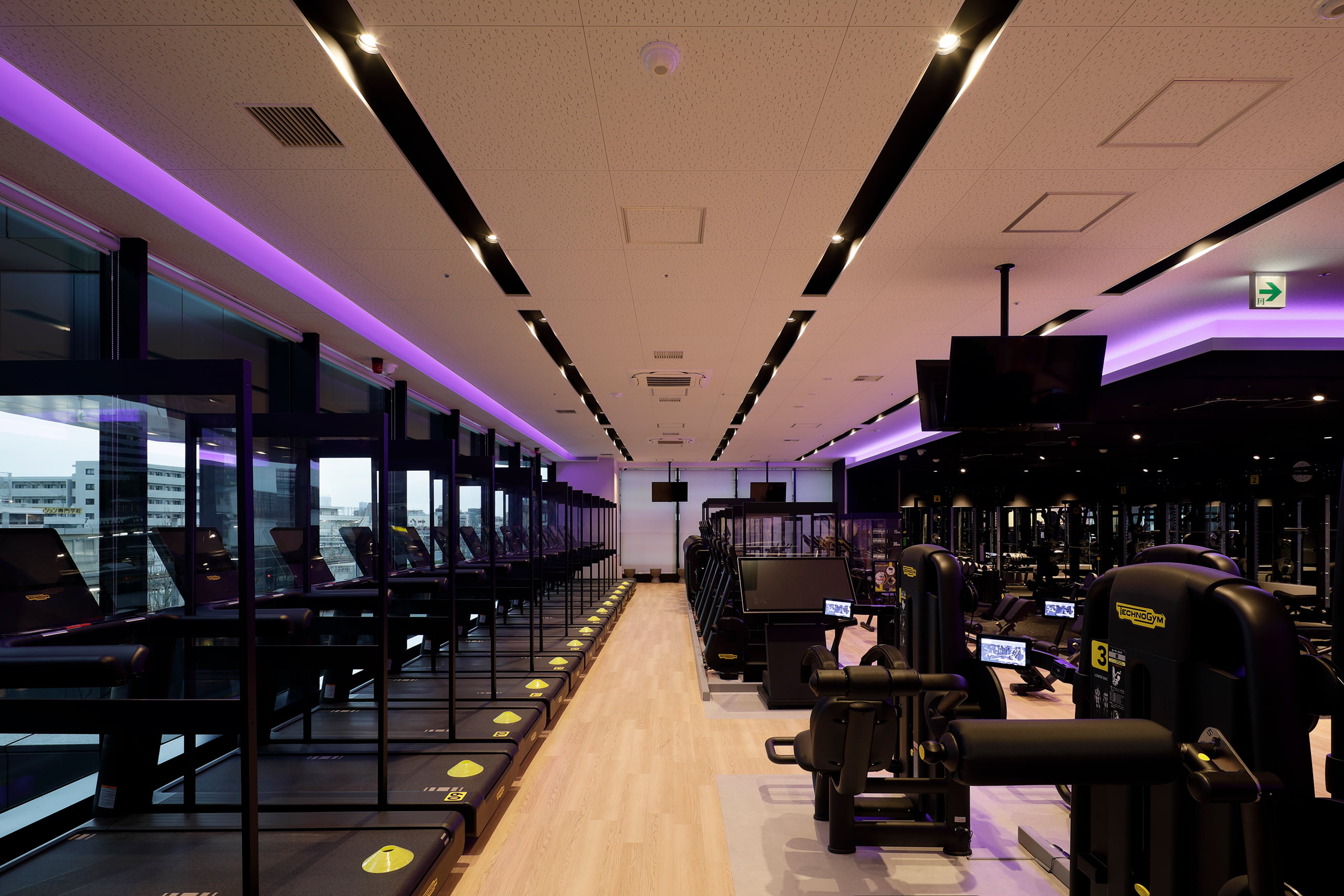カラーライティングが自宅のトレーニングとは一味違う、非日常的な空間を演出。