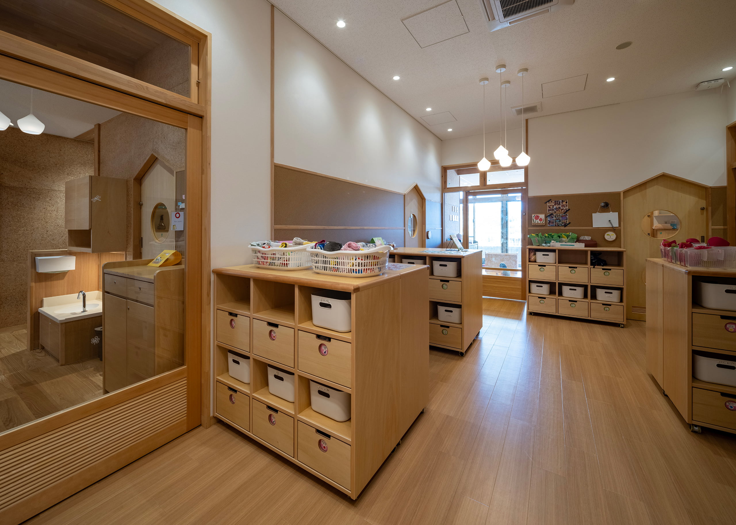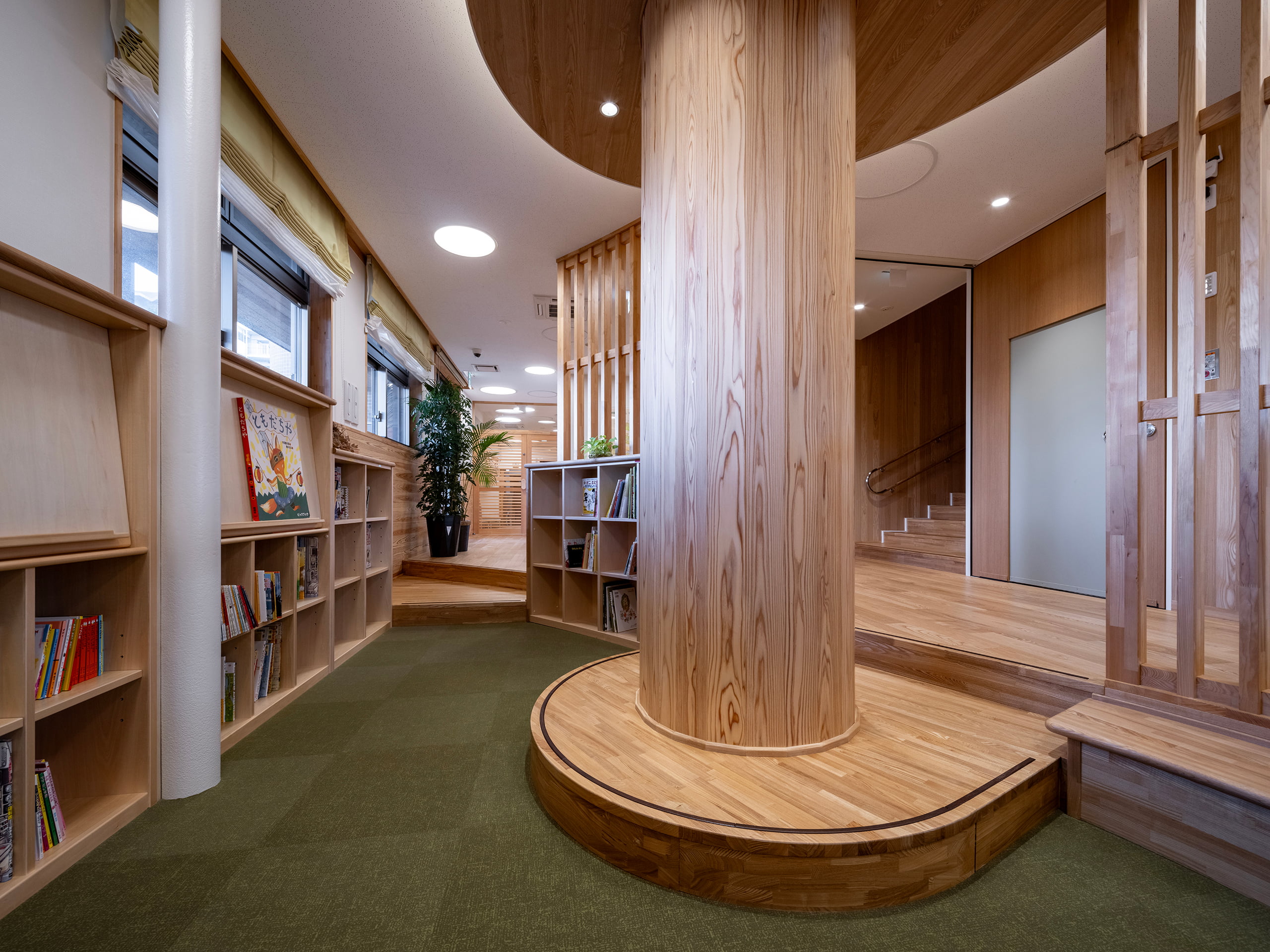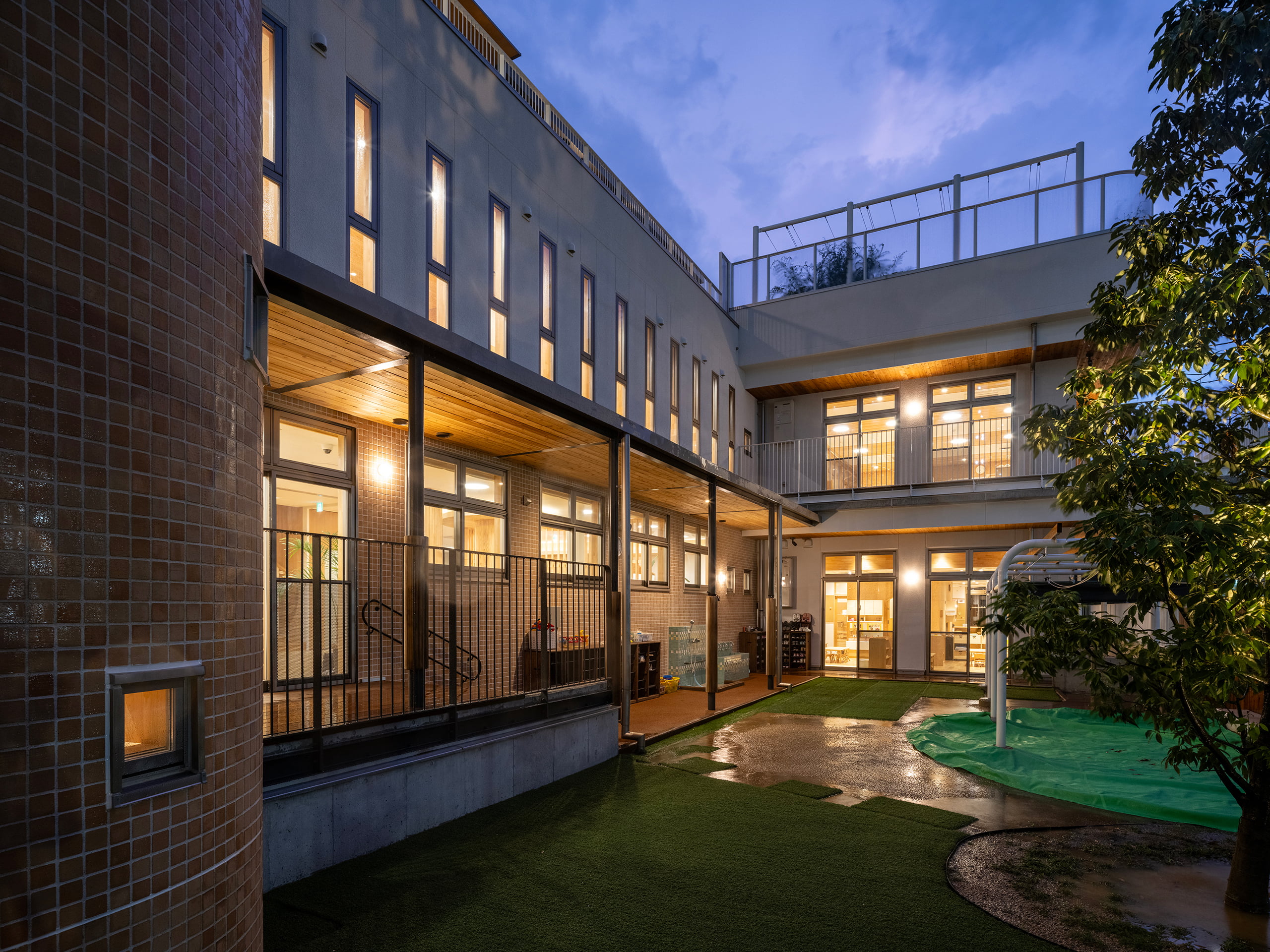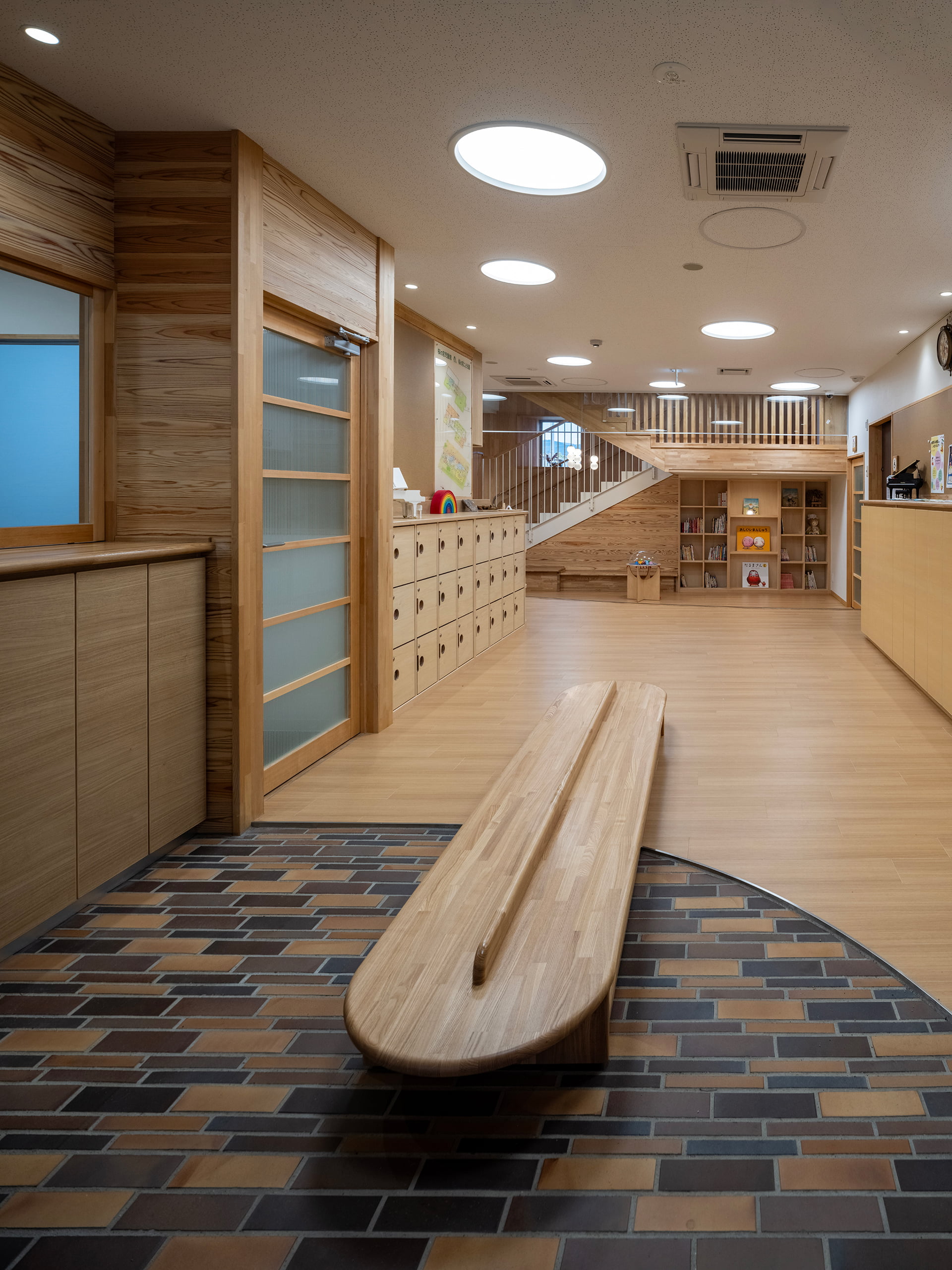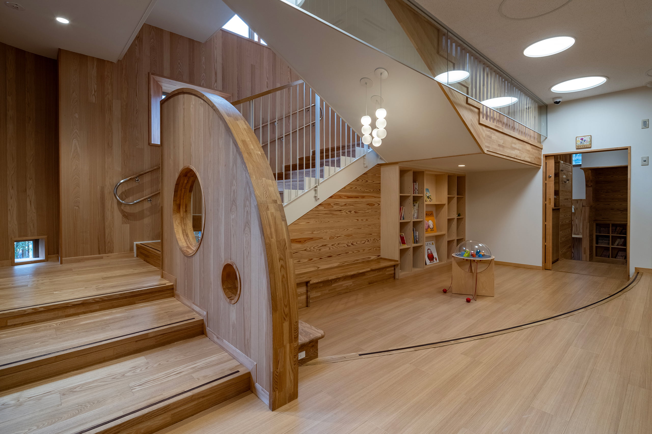 こども園と児童館を併設した建築となっており、その段差をうまく活用した断面計画が