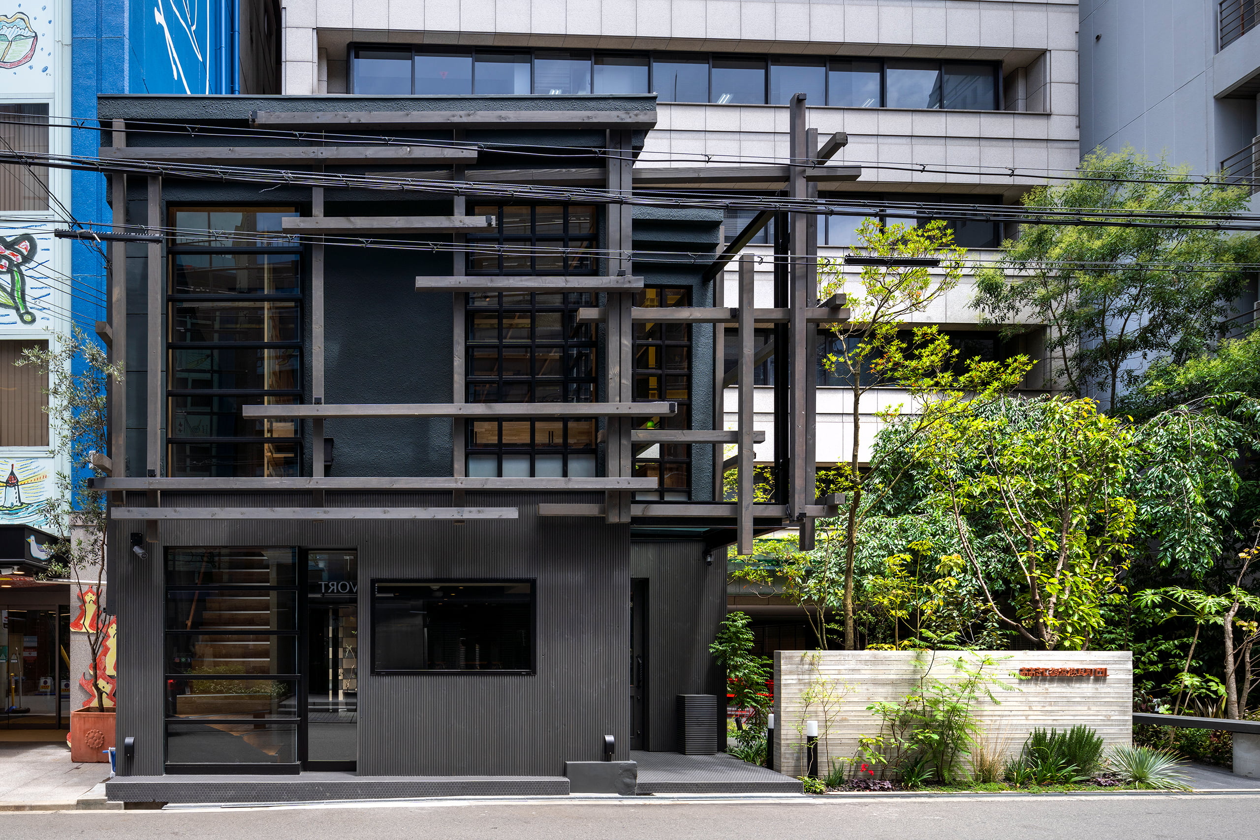 木材がランダムに配置された特徴的なファサードに対して、設計者から頂いたお題は