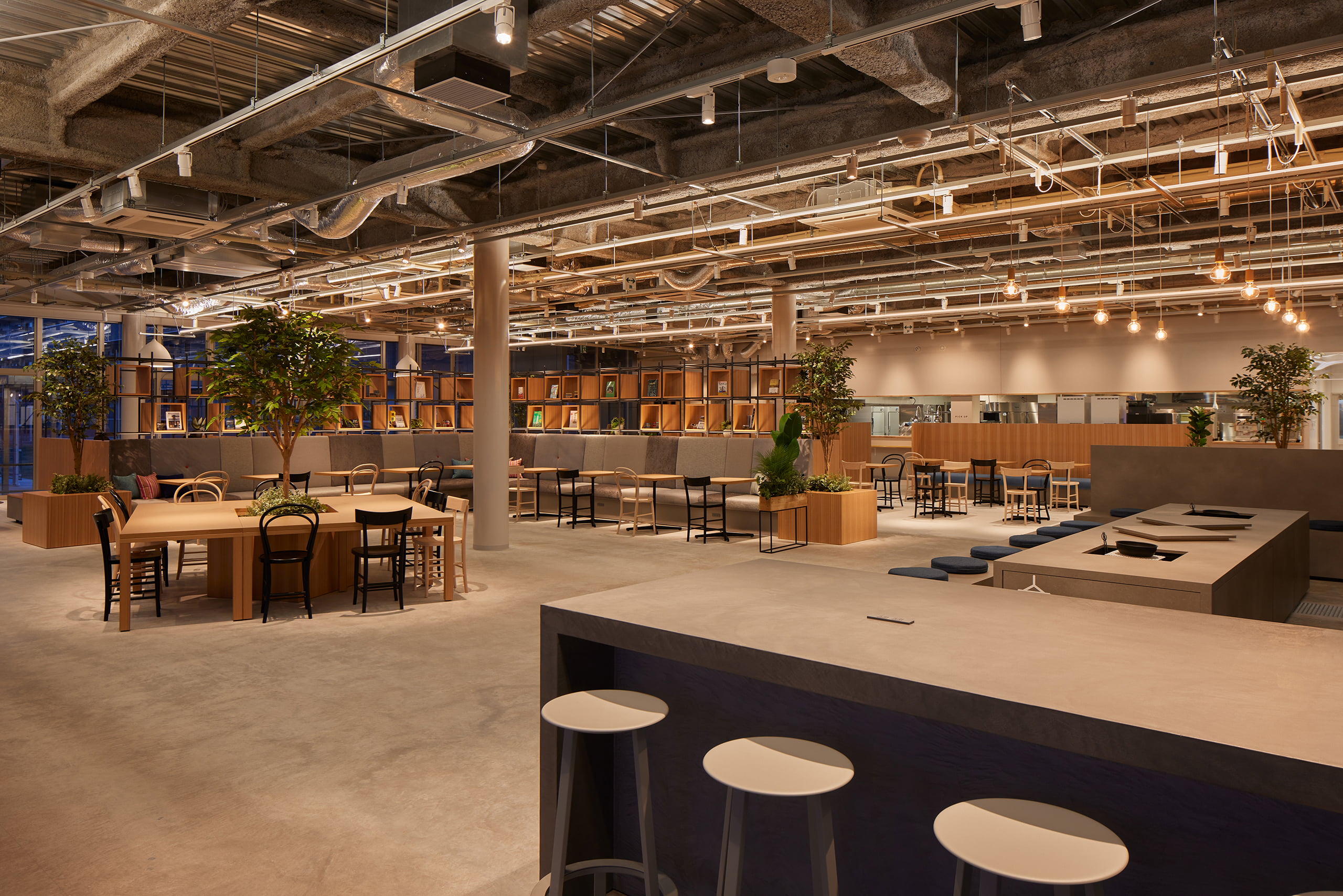 社員食堂兼コミュニティースペースとなっていて囲炉裏やシェアキッチン、