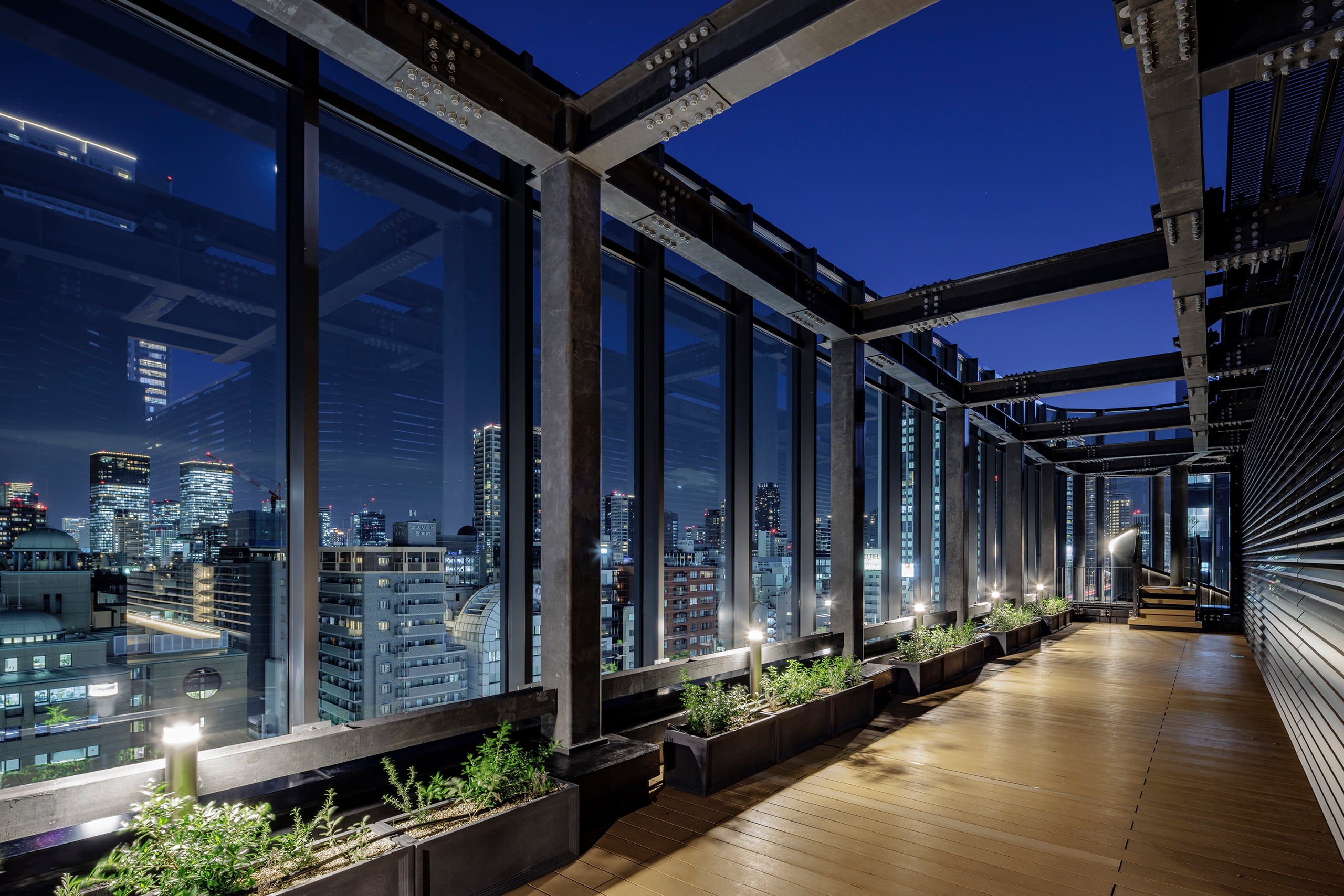 夜は都会の夜景と融合した心地良いテラスとなっている。