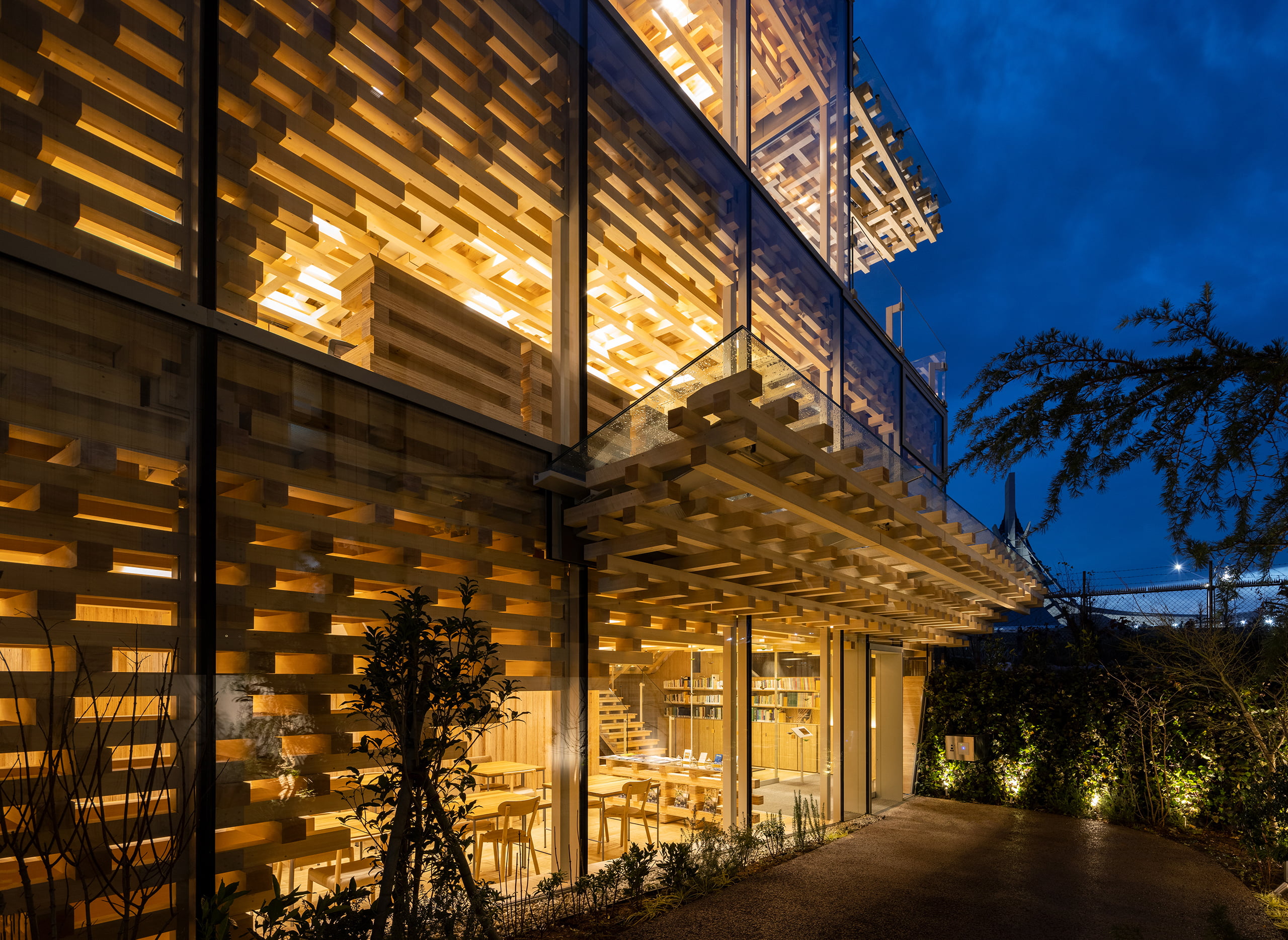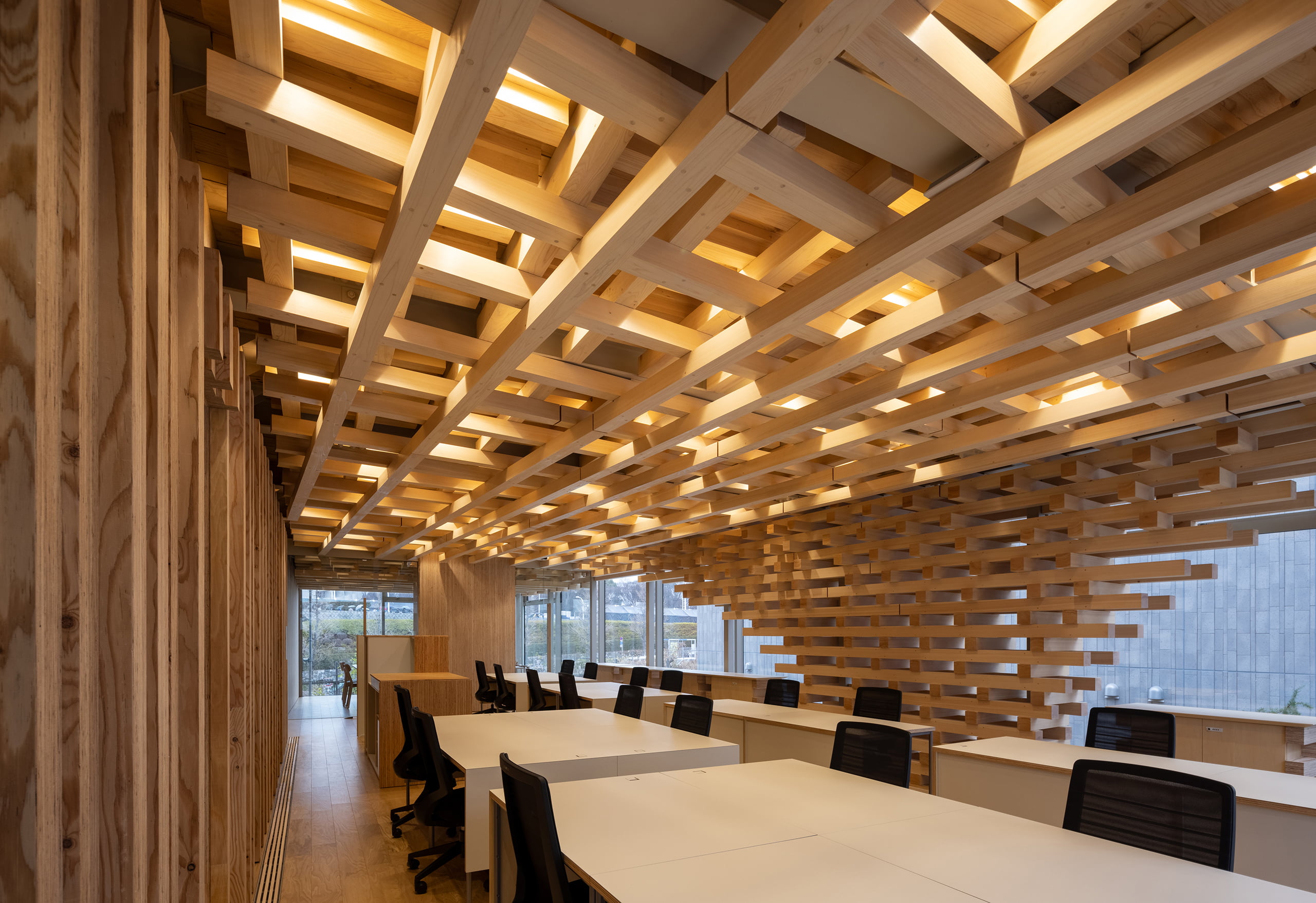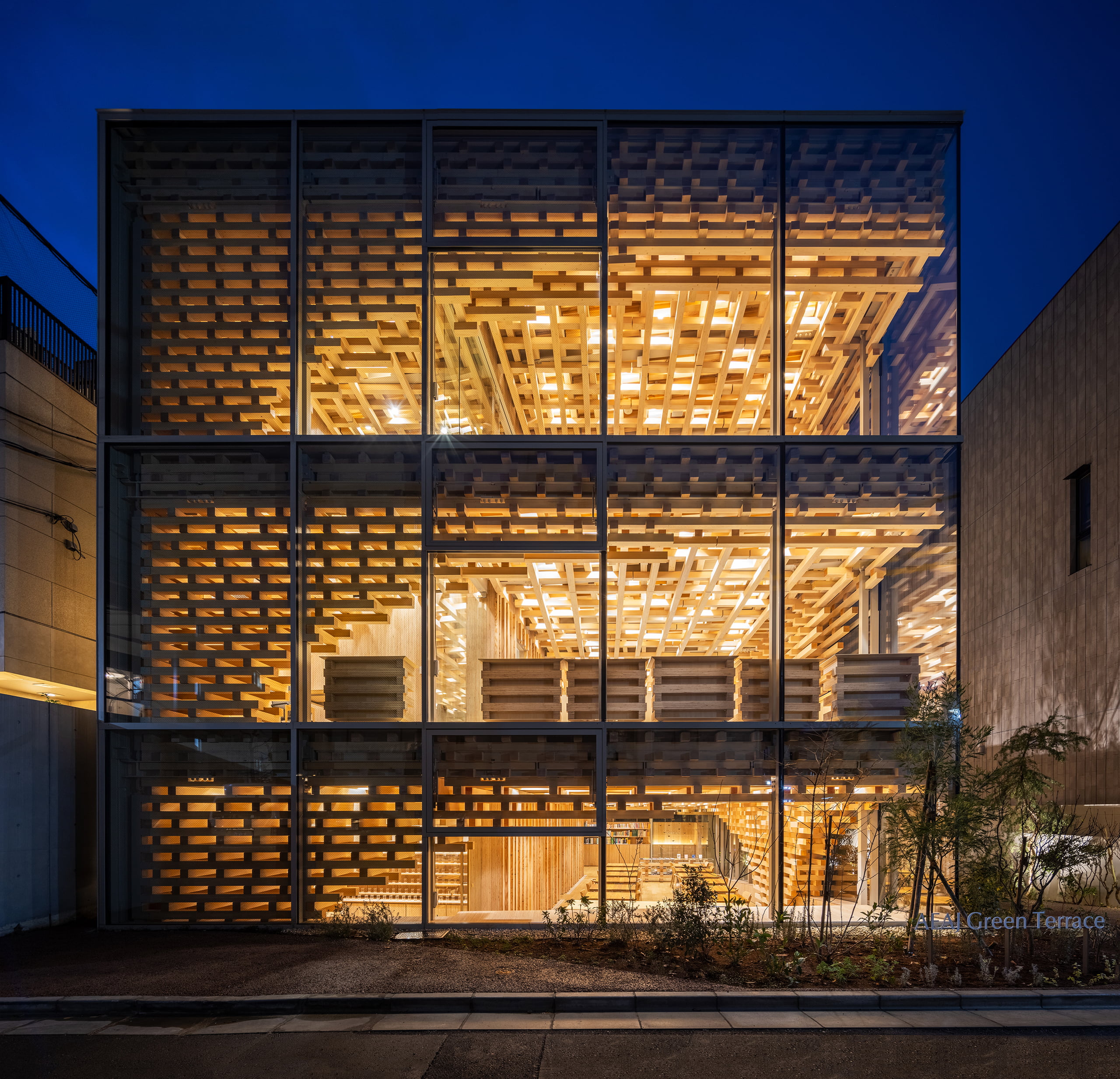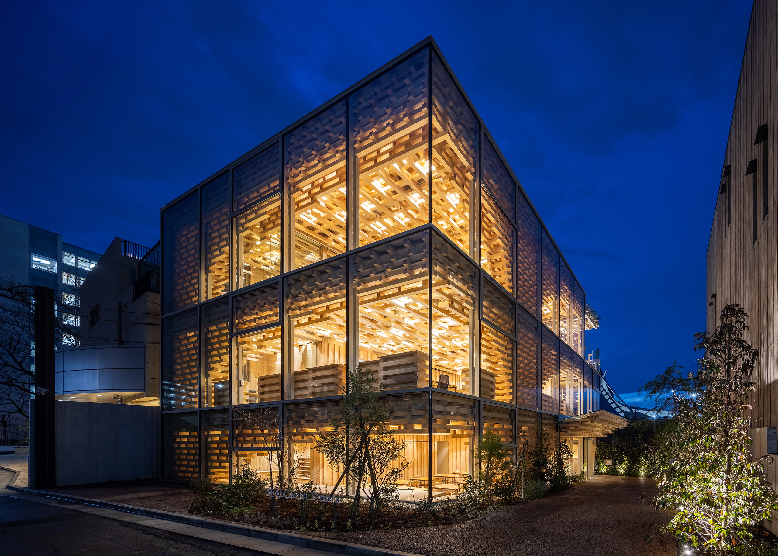 神宮前の小さな森というコンセプトの建築は、樹木のように組み上げられた