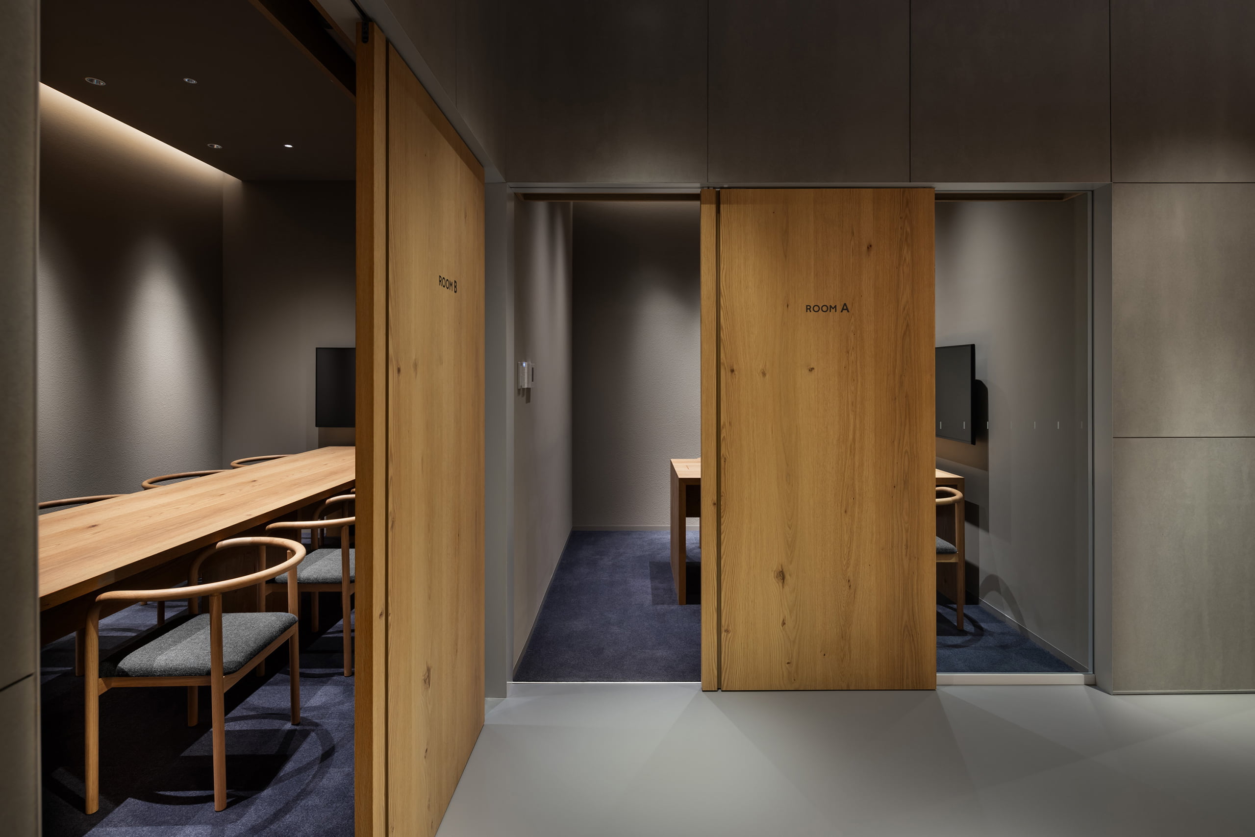 登録し、展示内容に応じてコントロール。シェアラウンジではRECOLスポットライトの柔らかく