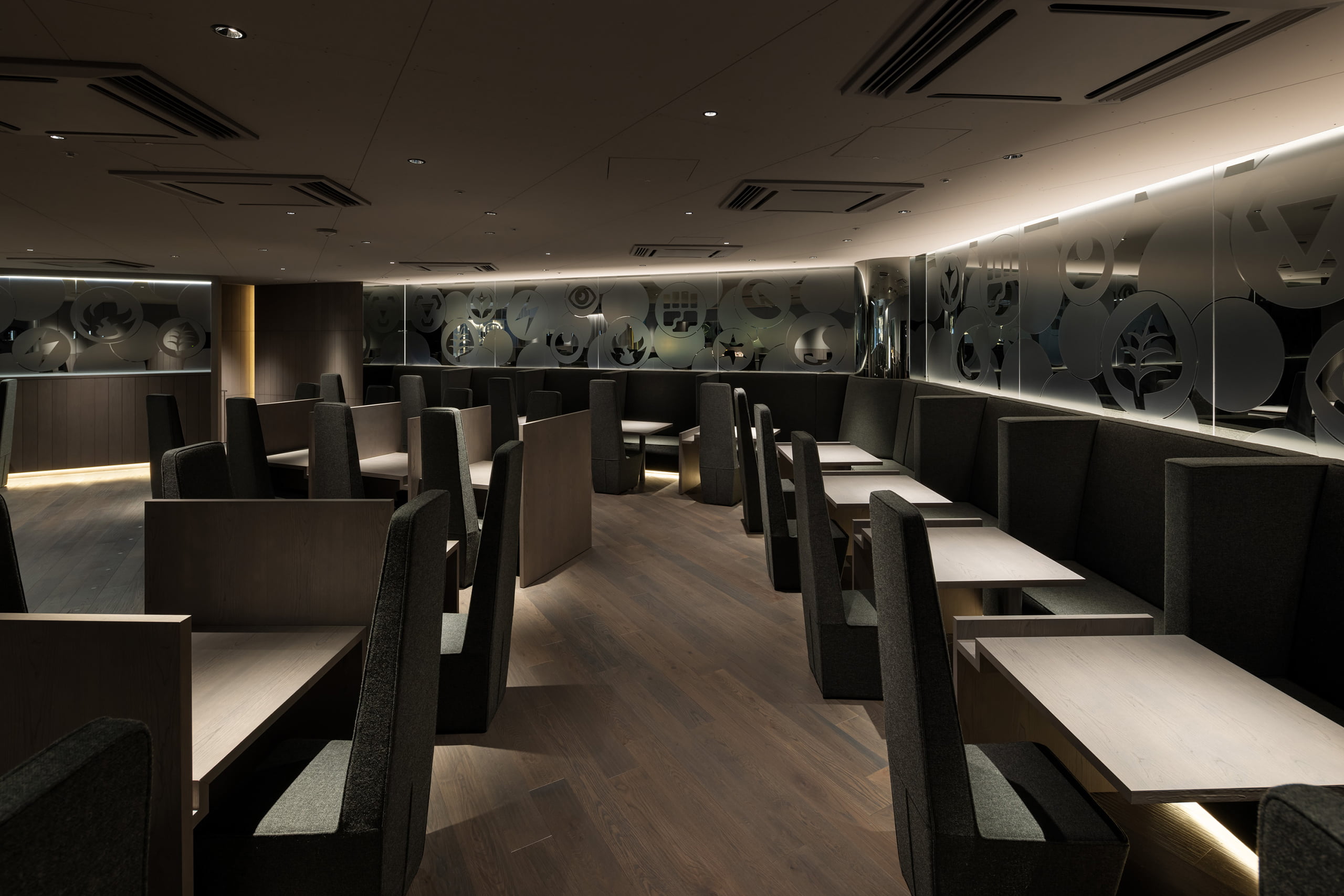 抑揚のある光でラウンジ感を演出。外光の入る時間帯に応じてシーンチェンジもさせている。