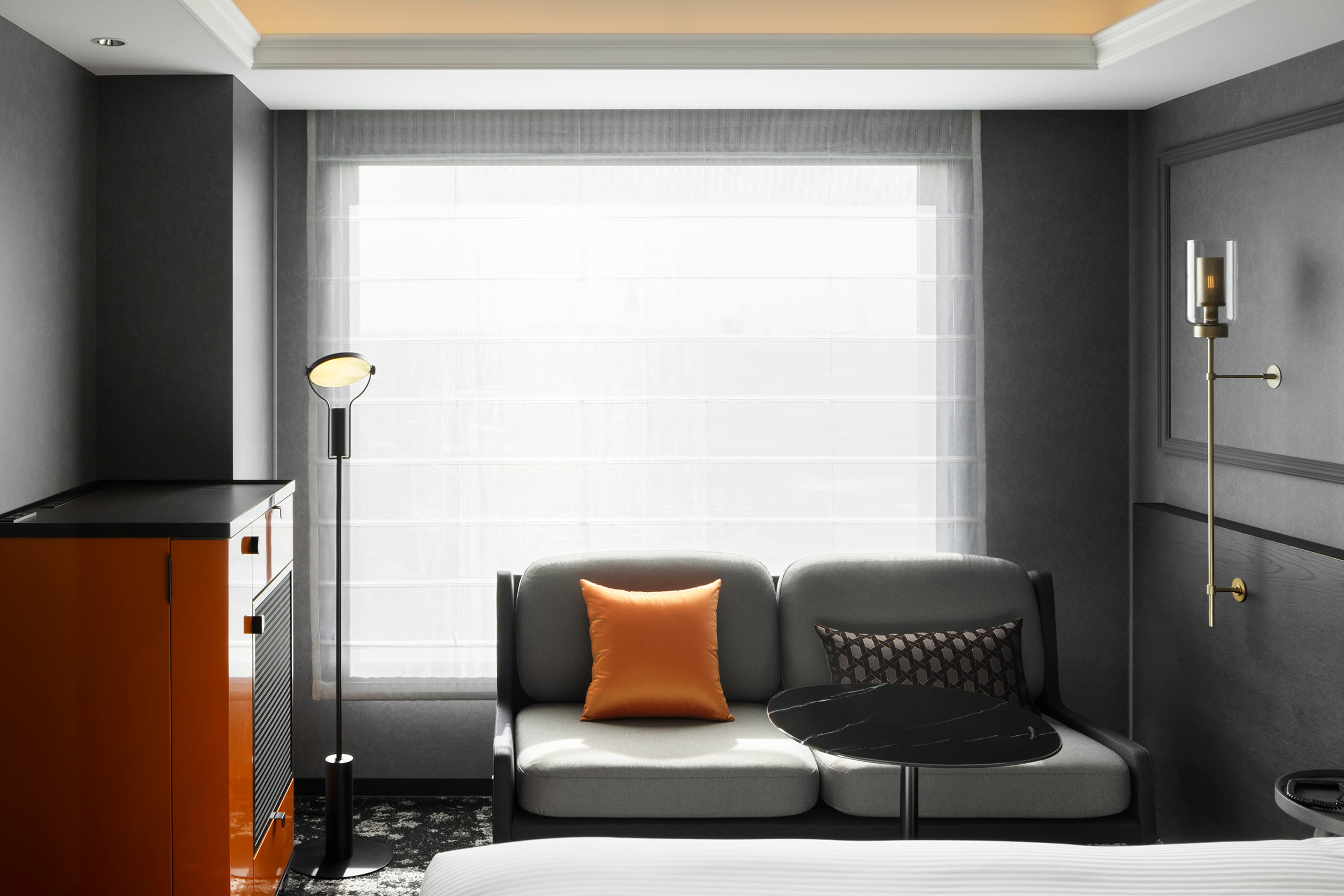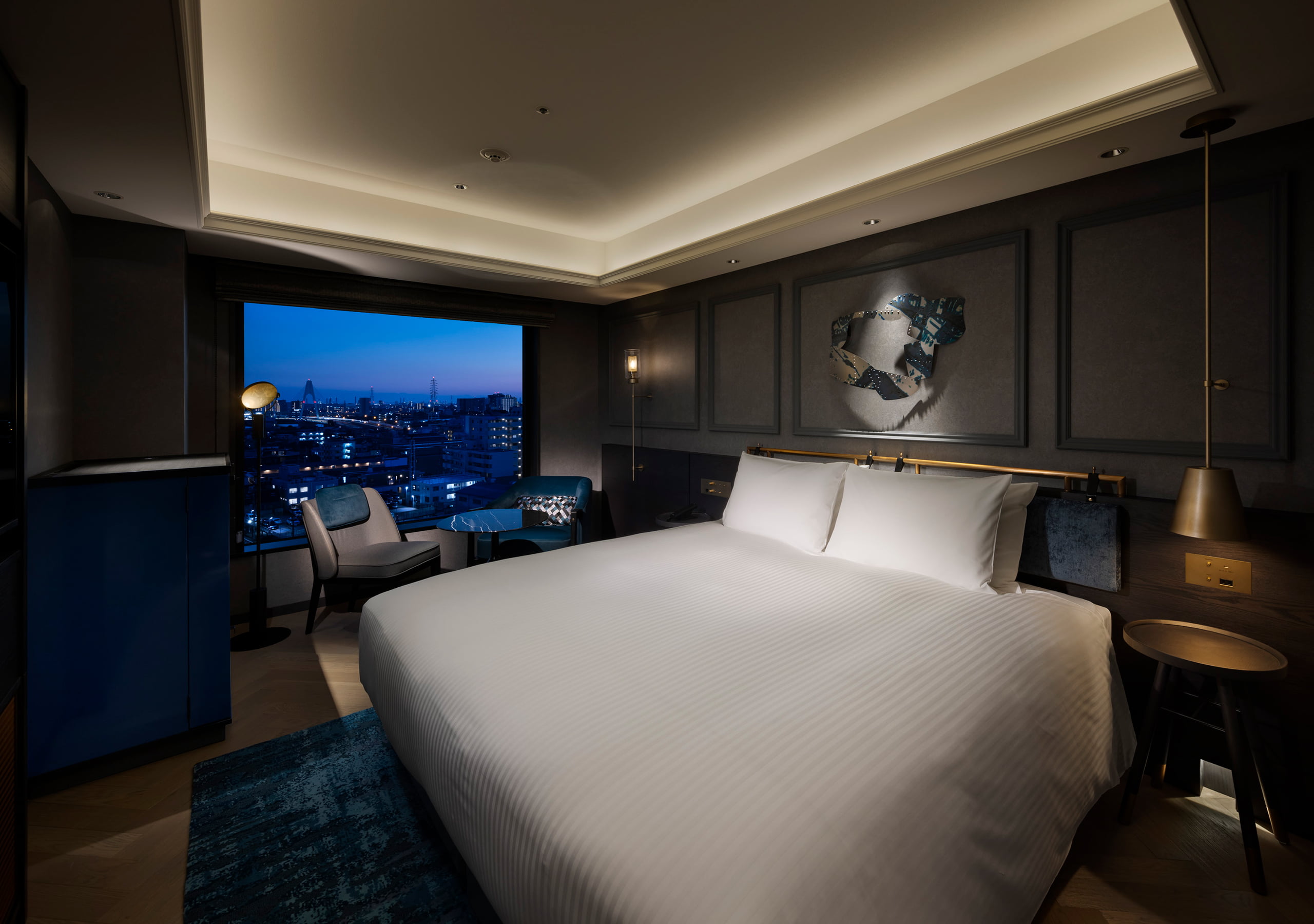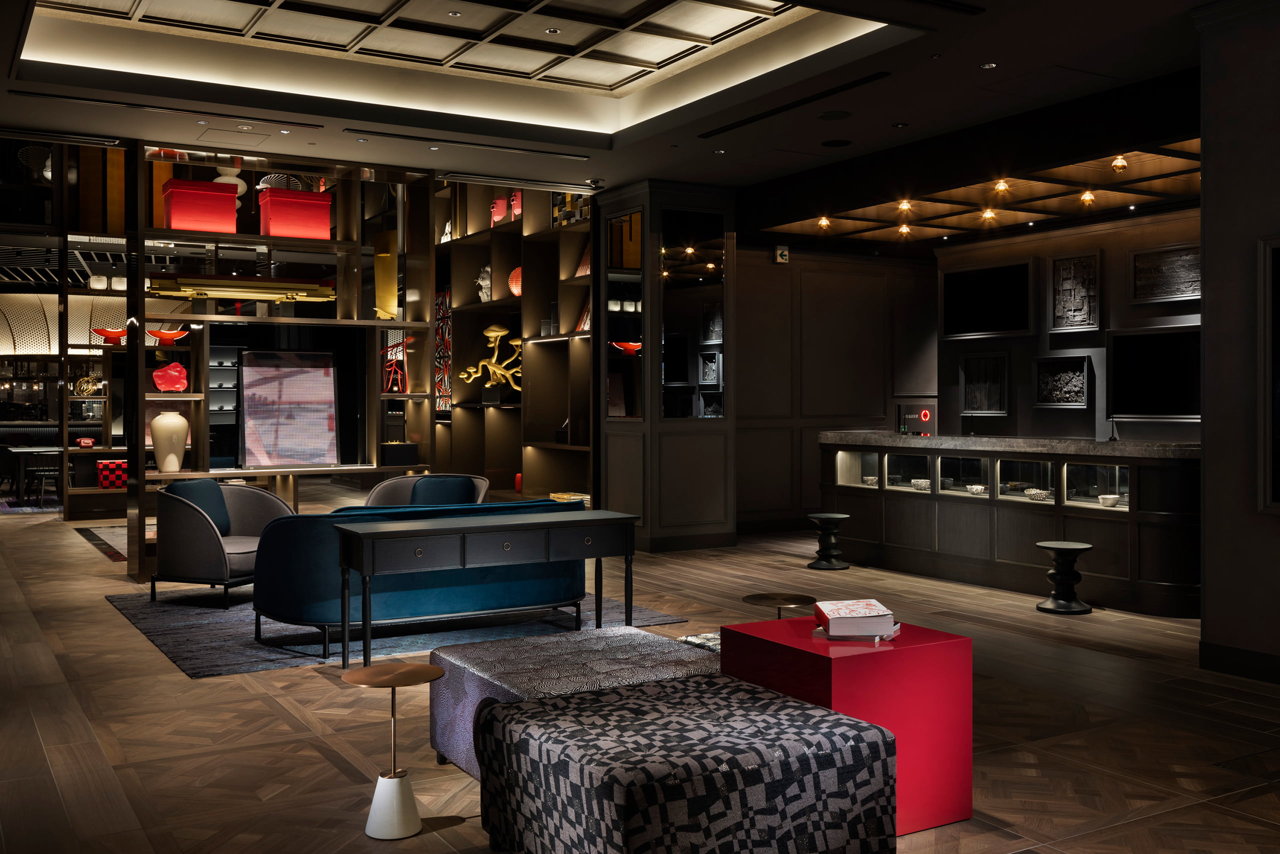 日本の伝統的な手工芸の要素と欧州エッセンスを取り入れ、各所にちりばめられた東京の過去から未来を感じさせるインテリアモチーフは、グレアレスダウンの光で印象的な表情が演出され、点在する特注照明器具も空間に彩を添えており、世界中から訪れる方々に、新鮮さと特別なひとときを感じていただけるホテルになっている。