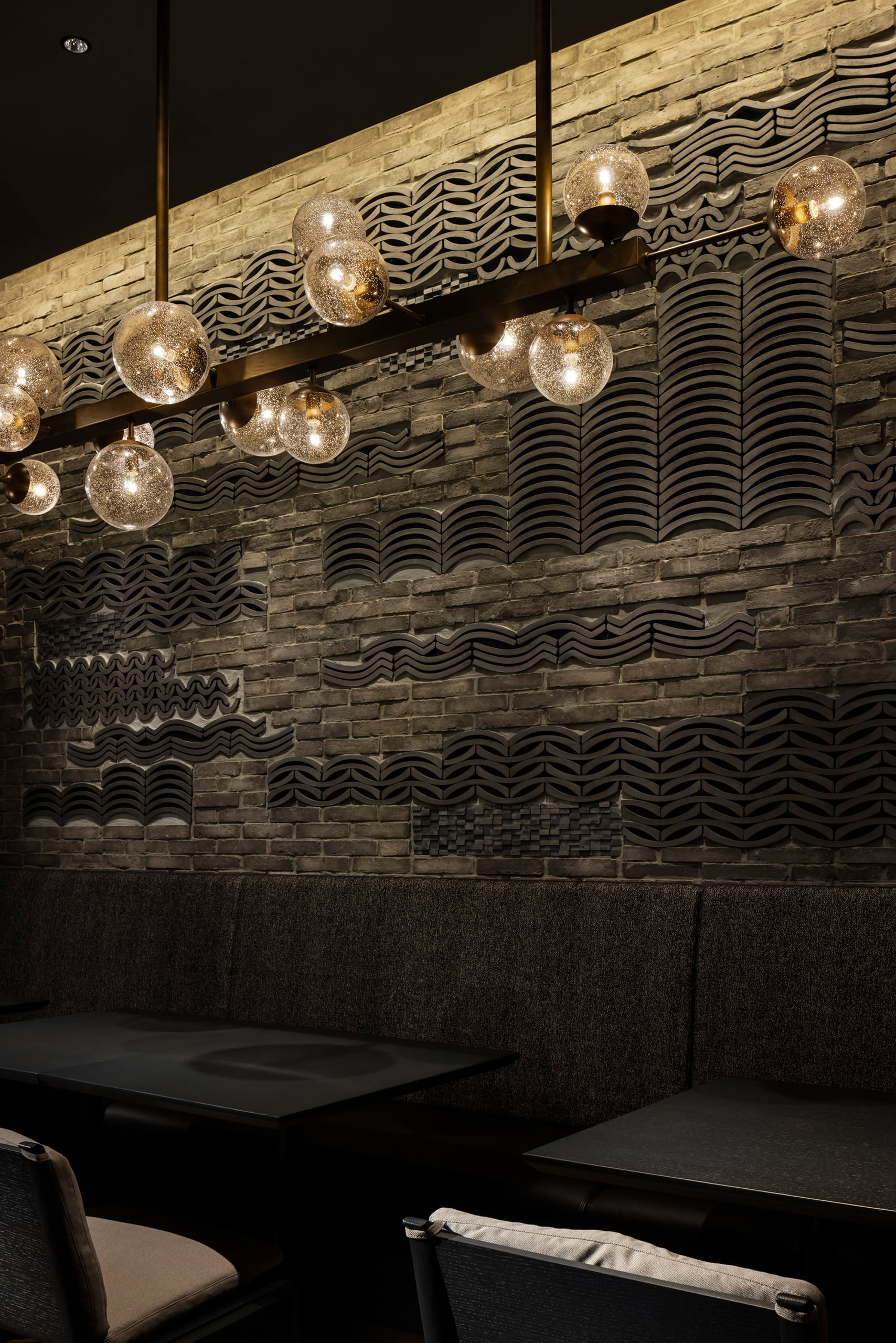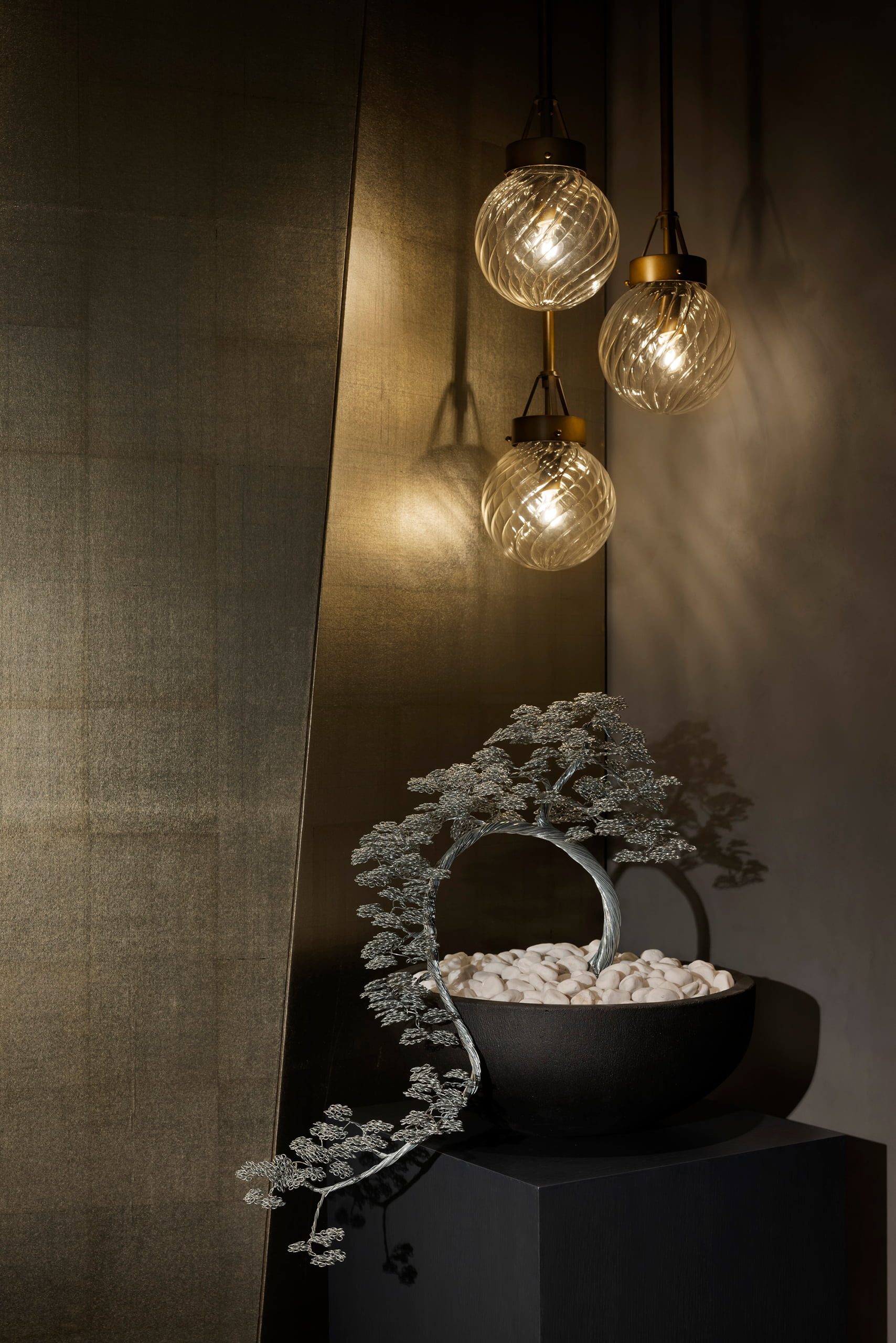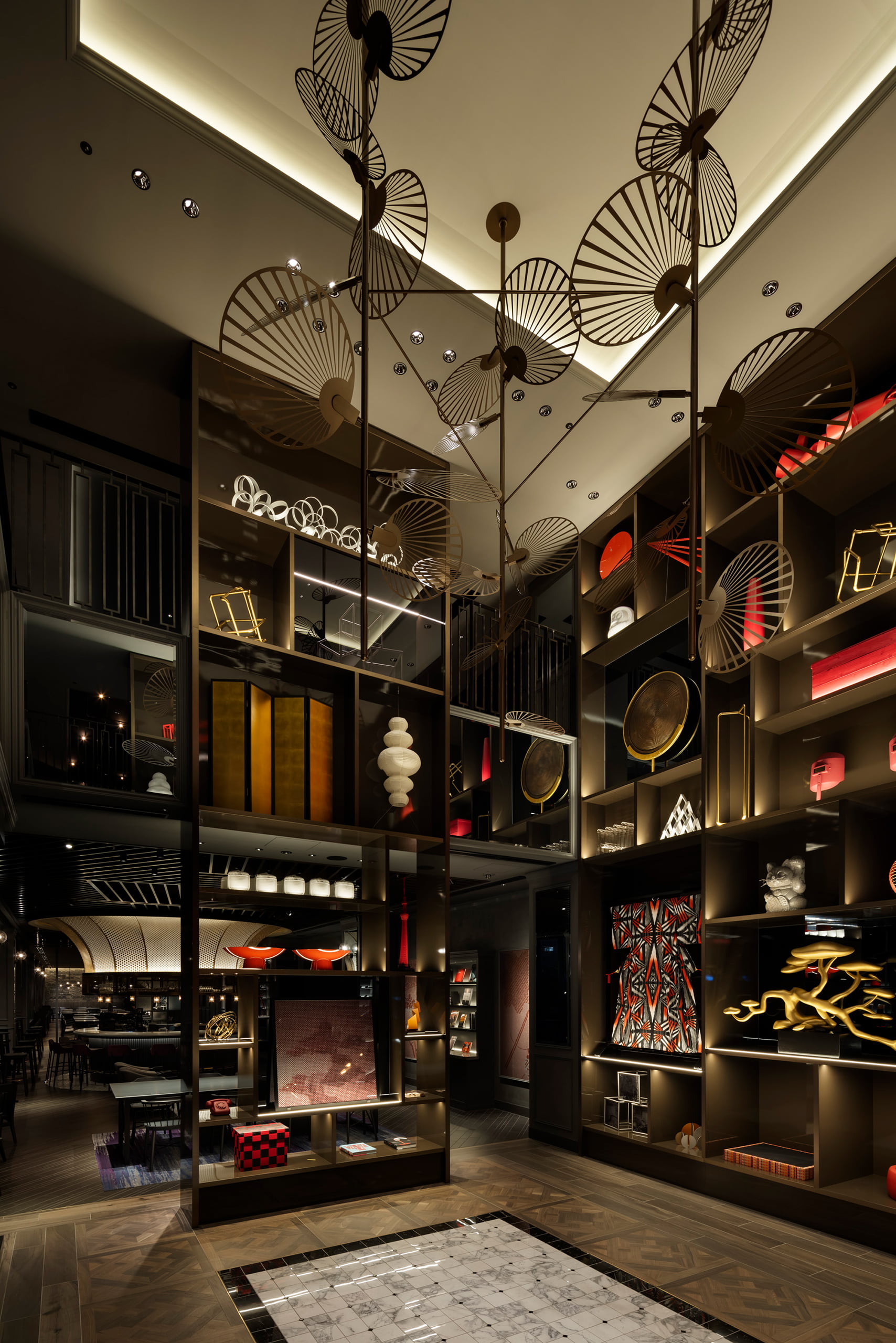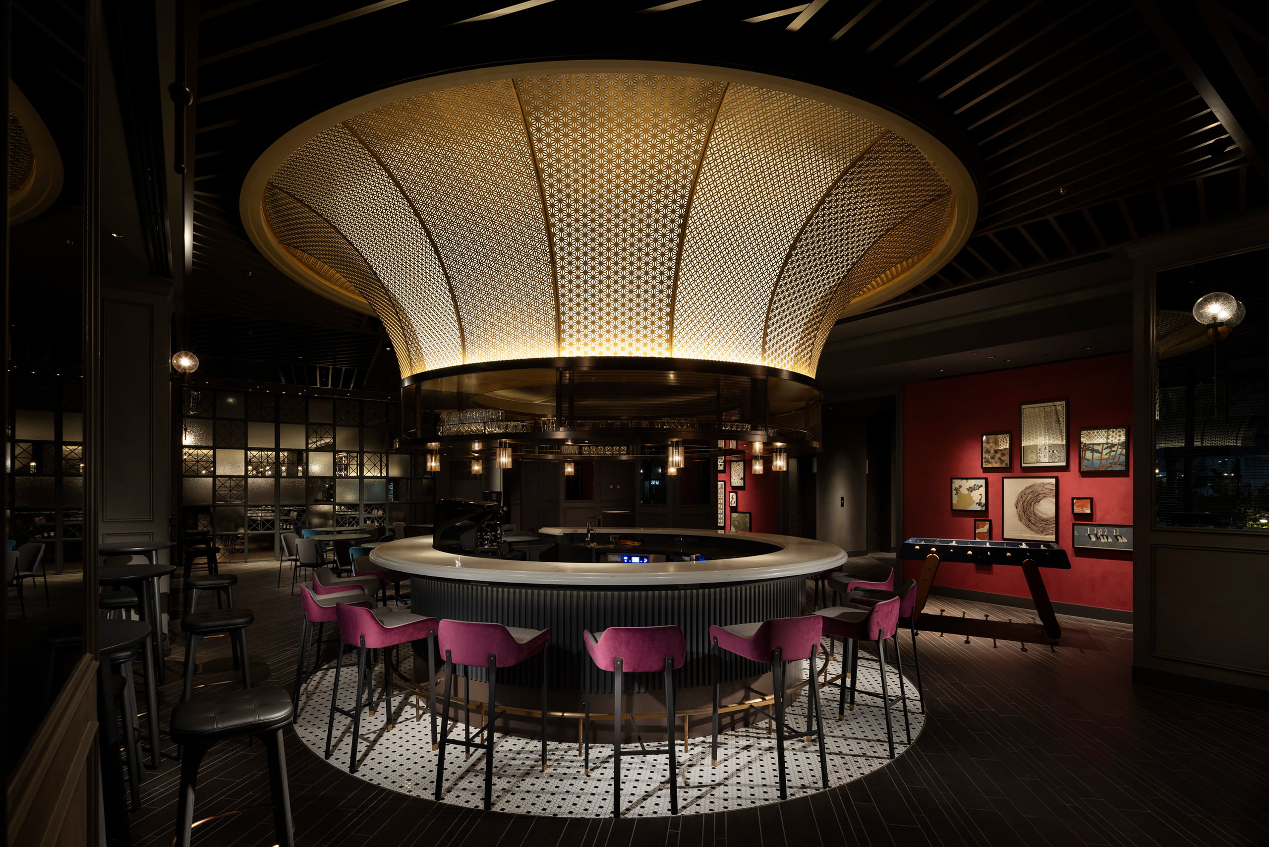 日本の伝統的な手工芸の要素と欧州エッセンスを取り入れ、各所にちりばめられた東京の過去から未来を感じさせるインテリアモチーフは、グレアレスダウンの光で印象的な表情が演出され、点在する特注照明器具も空間に彩を添えており、世界中から訪れる方々に、新鮮さと特別なひとときを感じていただけるホテルになっている。