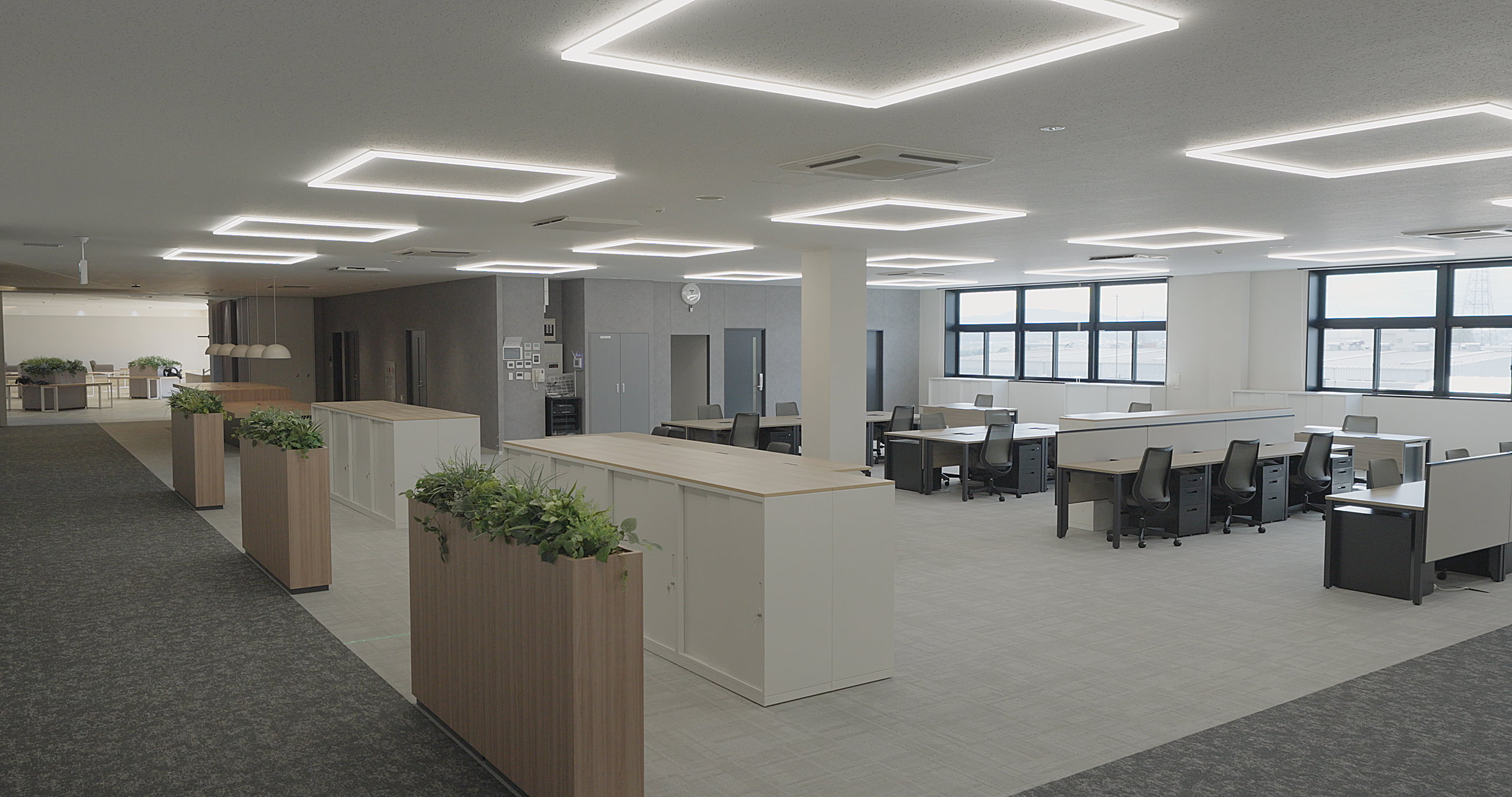 SENMUを導入いただいたことで、働く時間や仕事の内容に応じた最適な光環境を提供し、快適な執務環境を実現できました。また、朝、昼、夜の時間帯に合わせて、明るさを自動制御することで、自然な光環境を再現しています。従業員の集中力や快適性の向上を図り、さらに使用状況や時間帯に応じた光環境の最適化により、エネルギーの効率的な管理が可能となり、省エネ効果も実現しました。