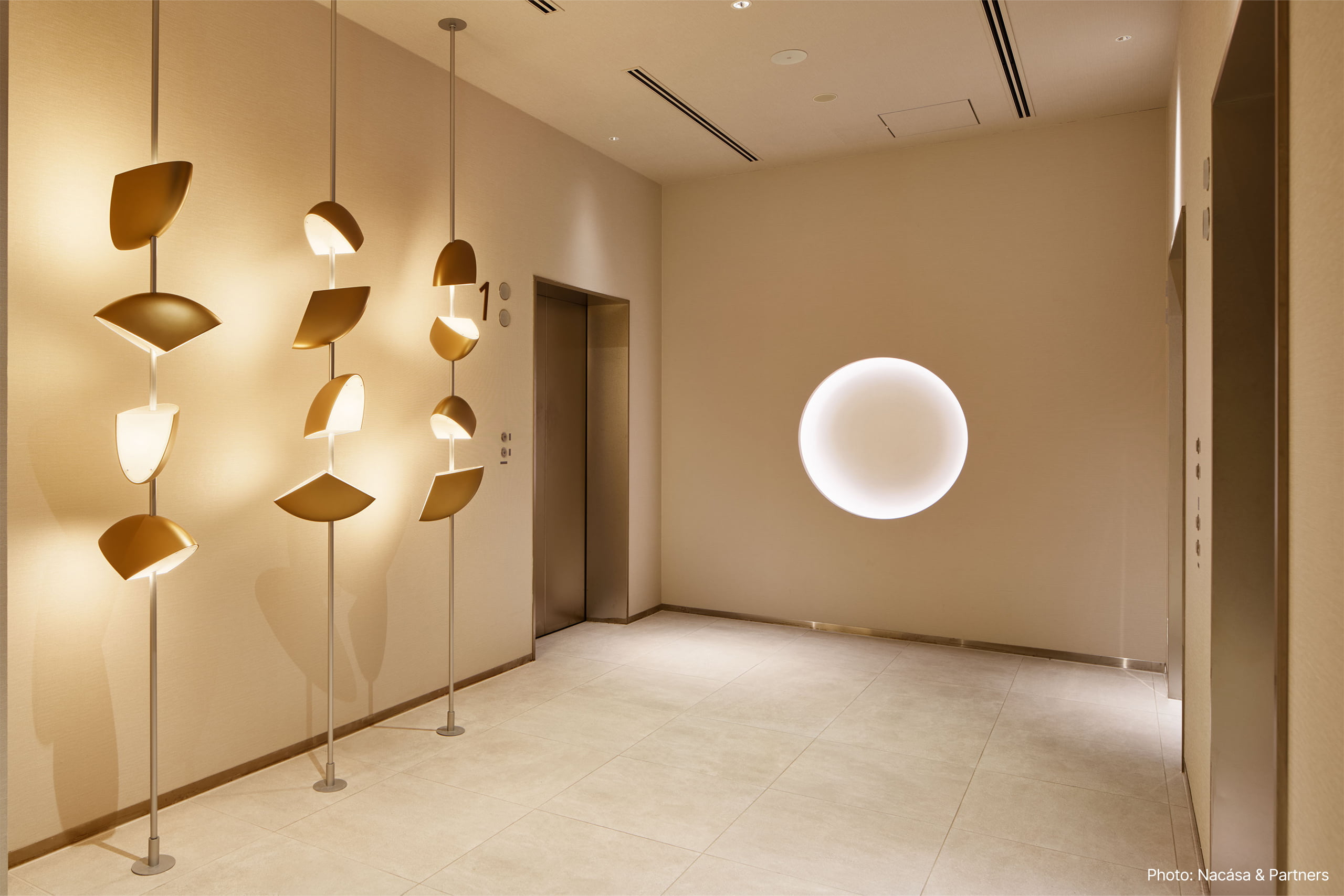「 凛とたたずむニセコの木 」 を体現する象徴的かつ周辺環境に溶け込む光を表現した。