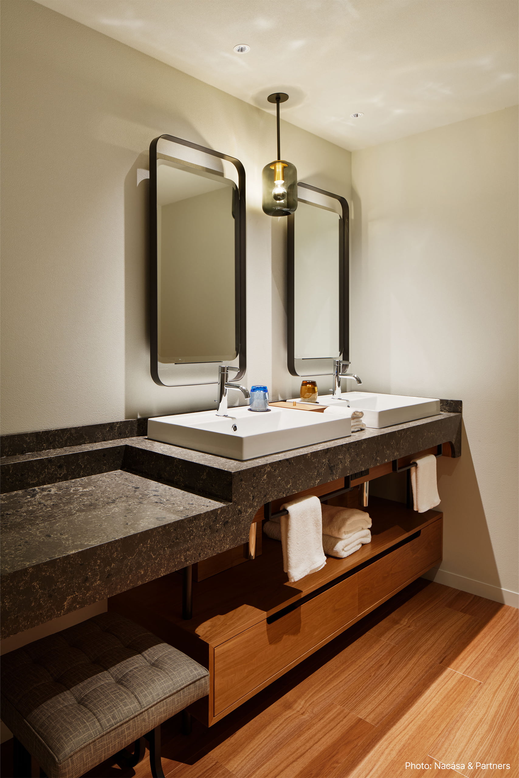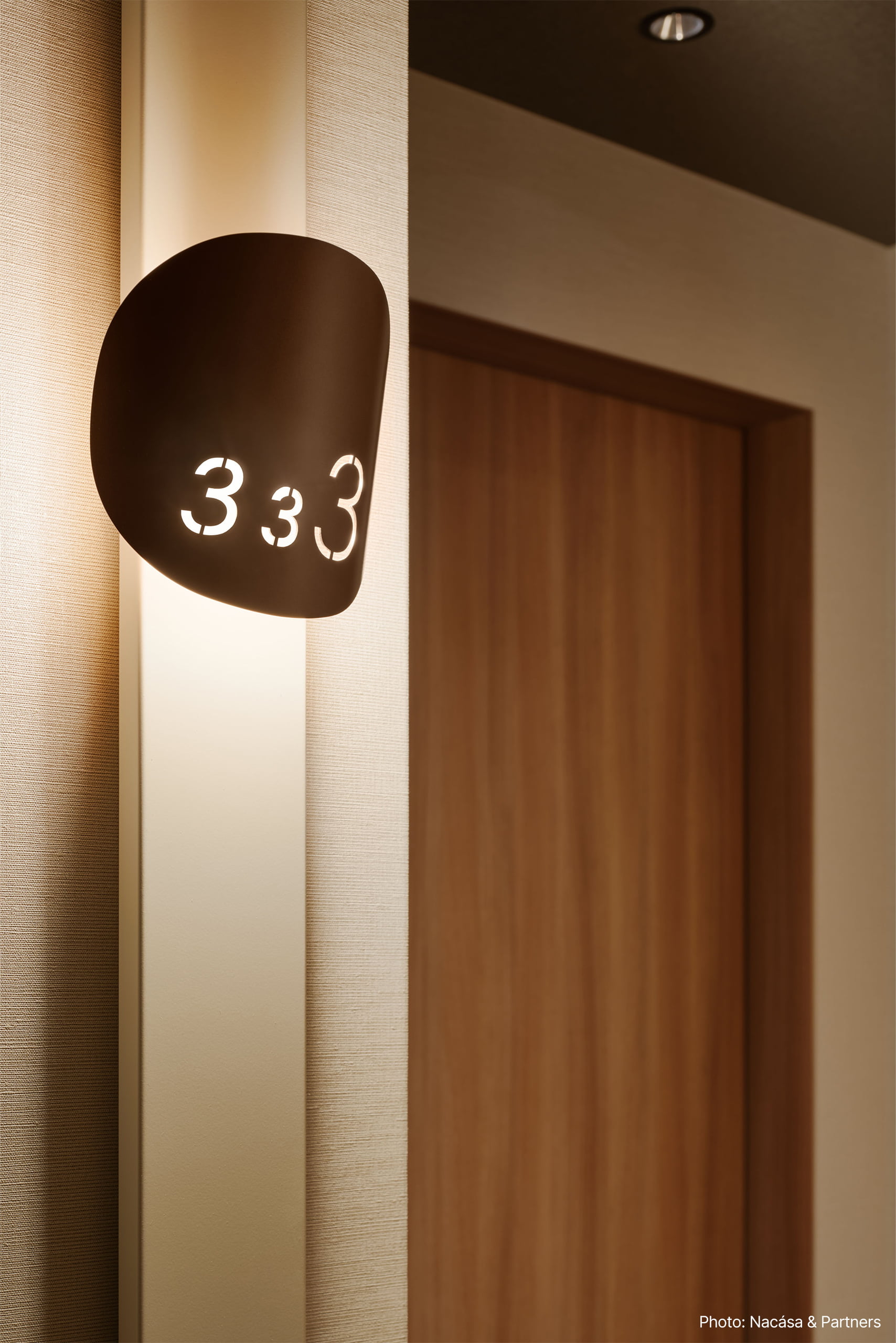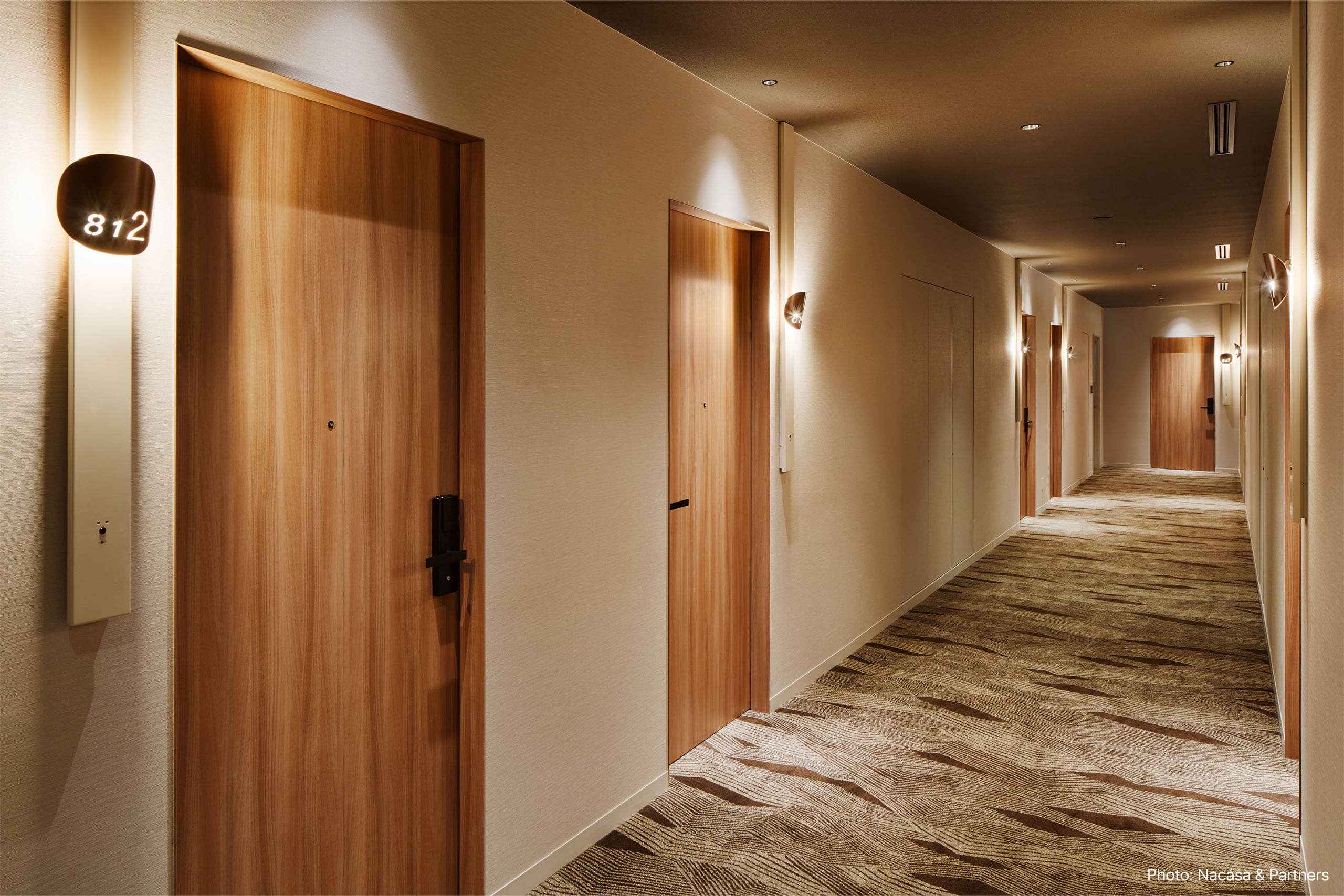 客室数は全234室。約28m2~108m2の客室で構成されており、上層階には温泉付きの特別客室を設けている。内部にはレストランやショップ、DJ イベントも行えるホール空間等を備え、周辺のストリートや広場と連携し、このビレッジのにぎわい創出の場ともなっている。
