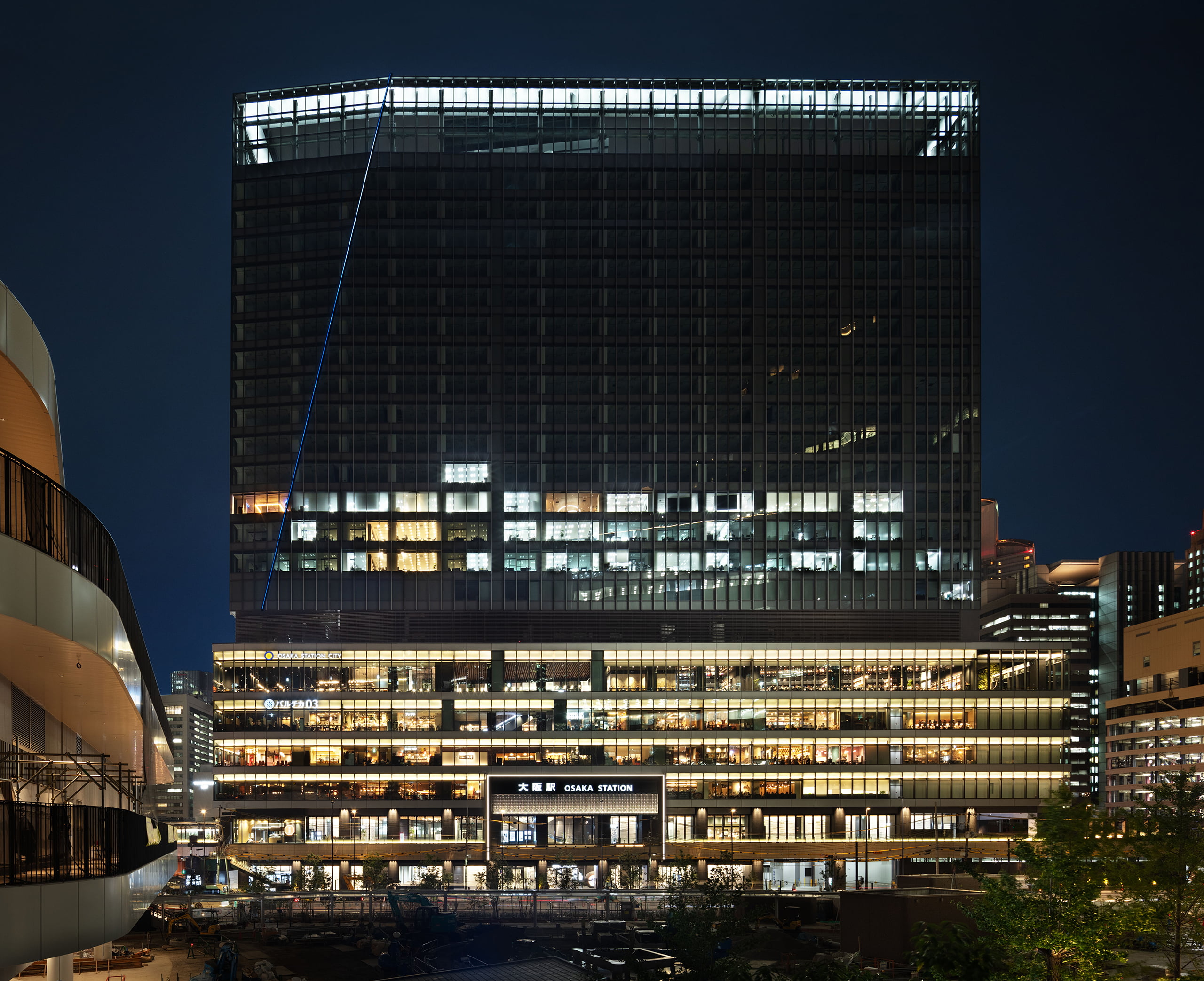 高層部分の斜めに切り落とした稜線部分に光を仕込むことで、未来を見据えた建築の姿勢を、JR大阪駅 西側エリアを行き交う人々に向けて発信することを意識した。