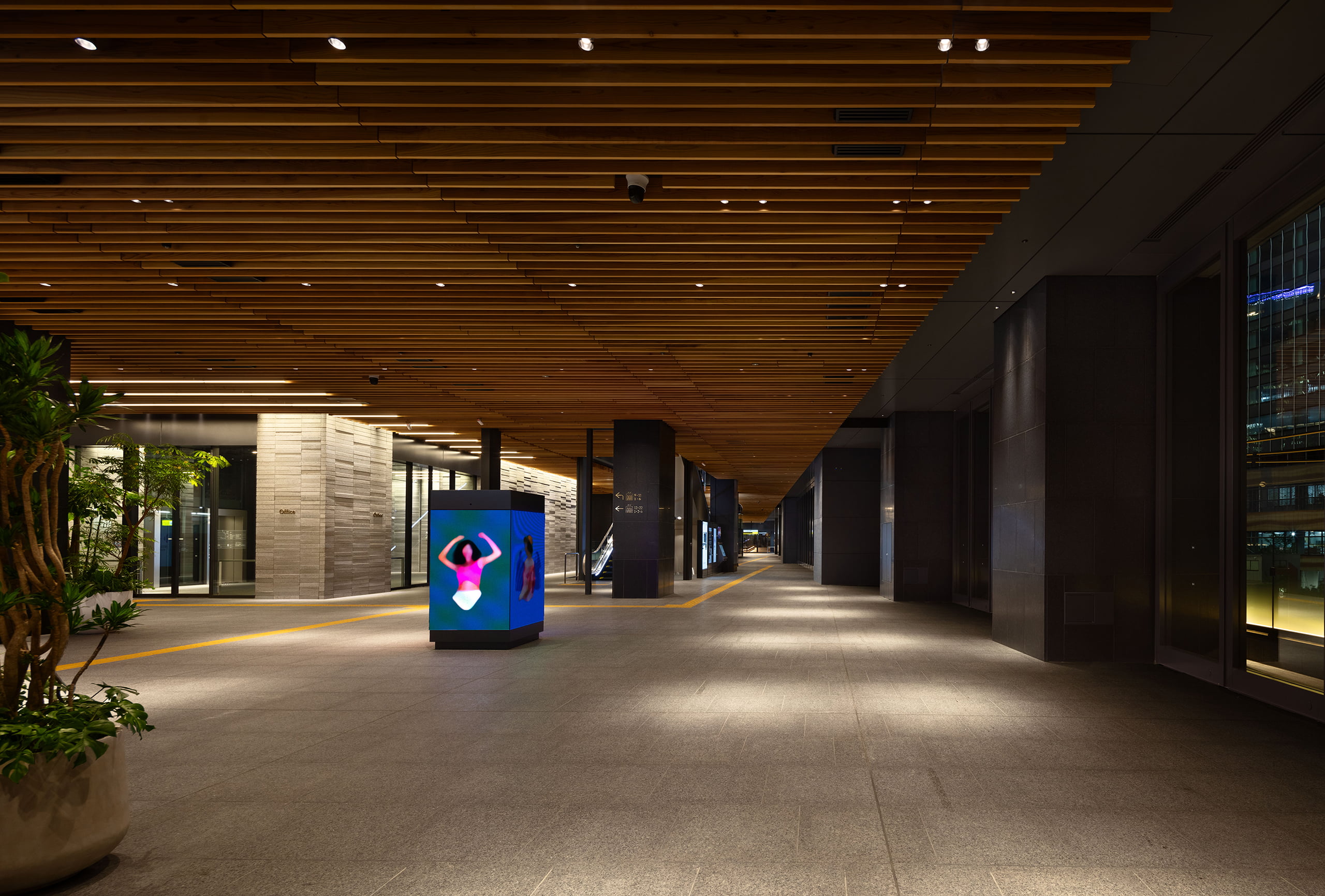 さらに、フィン照明は「時を纏う」光の演出によって、建築に生命を宿す役割も担っている。単なる照明ラインではなく、全8シーンの映像演出を施すことで、光が時間とともに表情を変え、都市のリズムに呼応するファサード演出を実現。