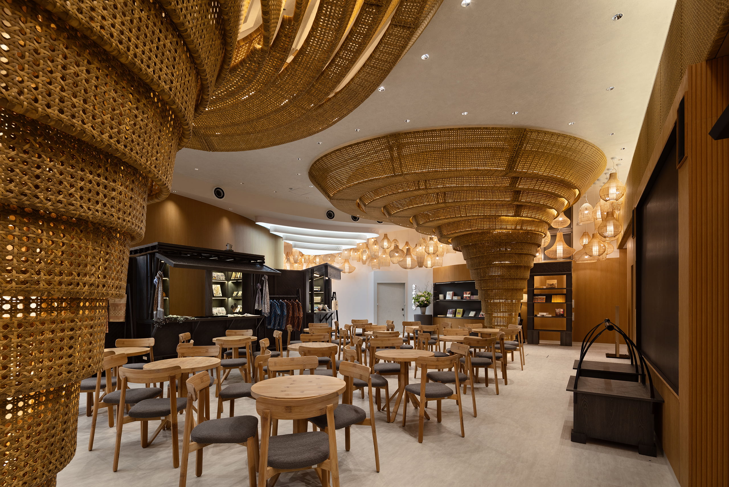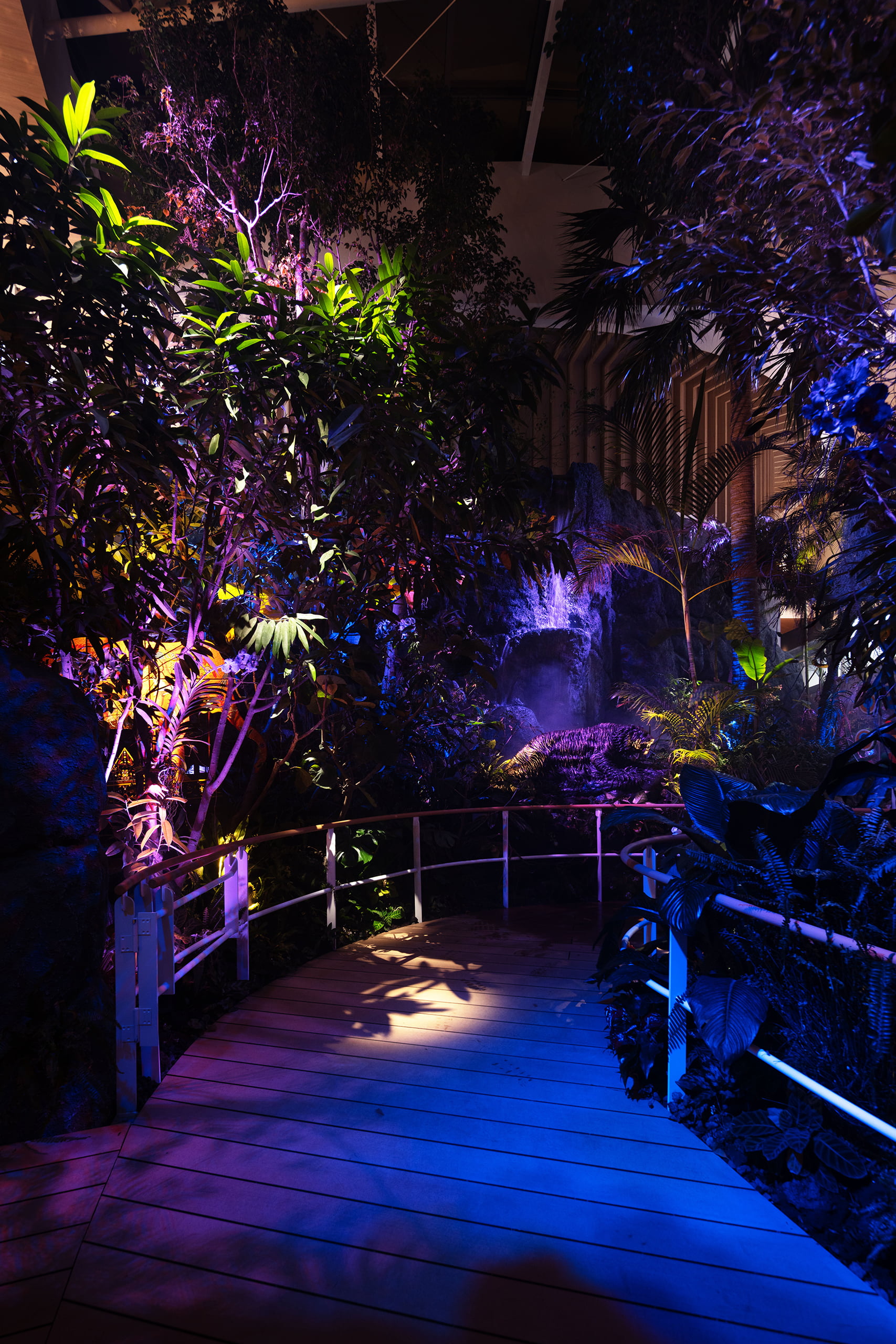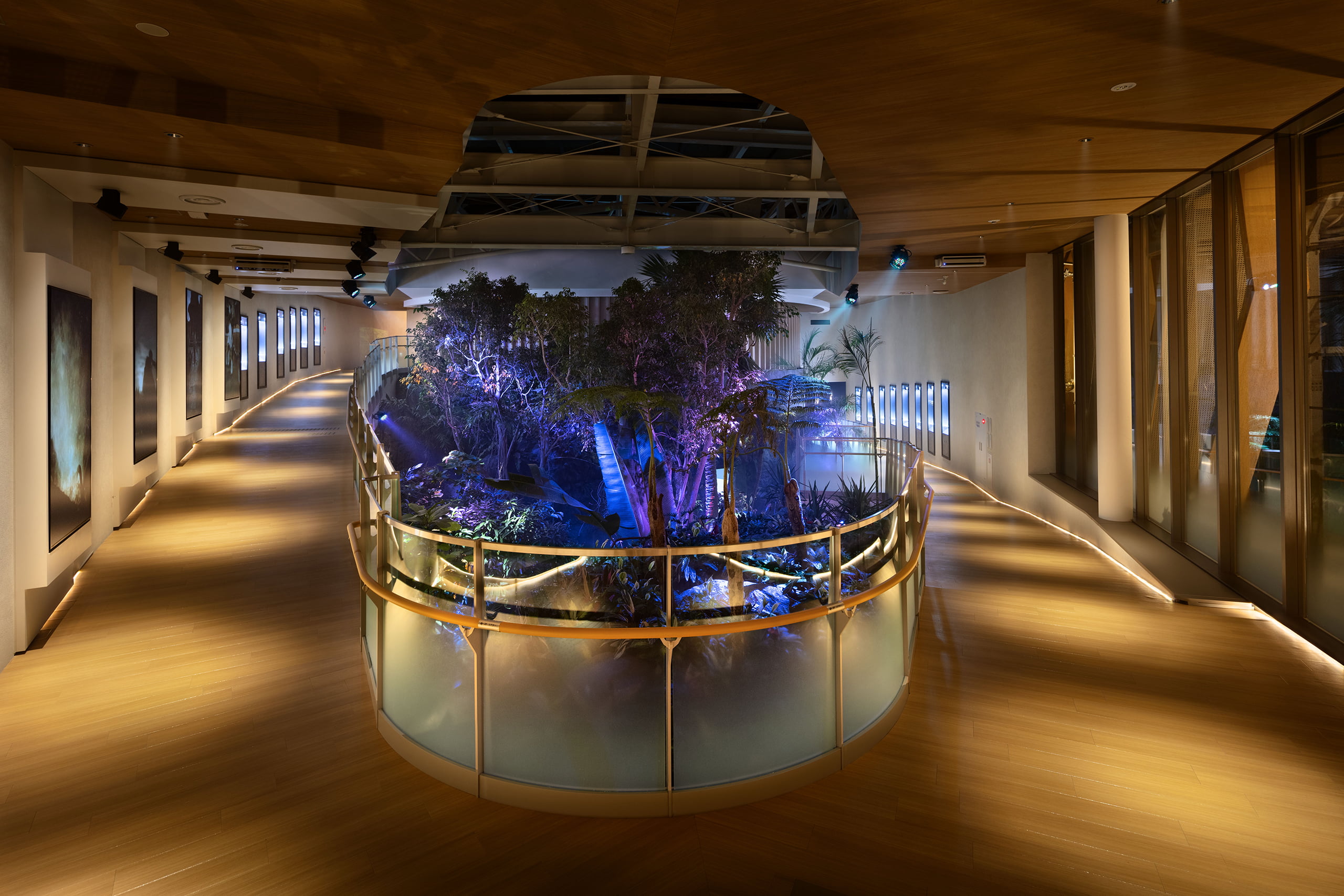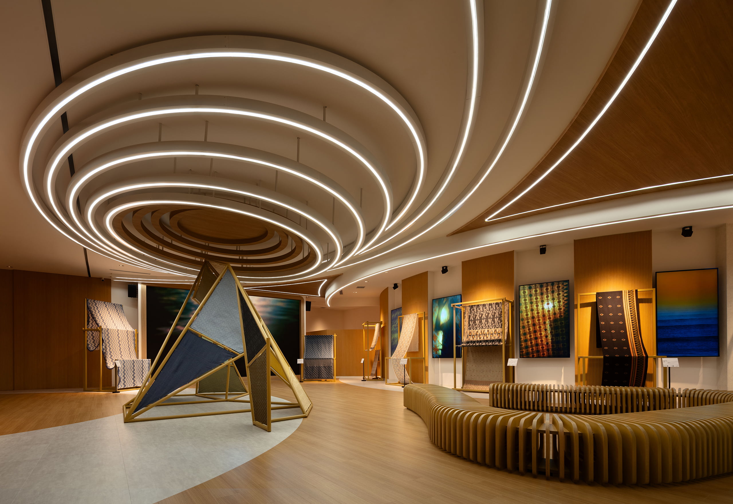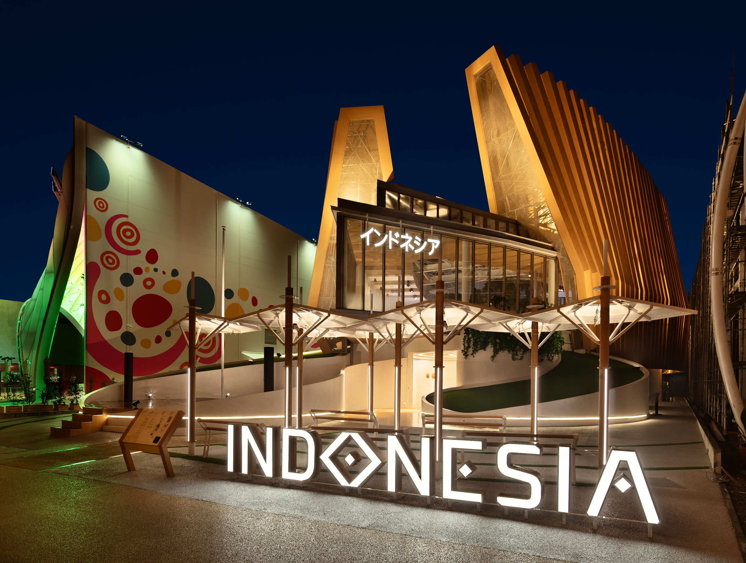 パビリオンモチーフは「船」。インドネシア共和国は世界最大の群島国である為、船は生活の発展において常に重要な存在であり、インドネシアの歴史と伝統の強力なシンボルとなり、国の未来への旅を象徴する理想的なアイコンとなっている。パビリオン内は、ネイチャーエリア、カルチャーエリア、フューチャーエリアに分かれており、全てのエリアにおいて無線制御システム「SENMU」を導入。特にネイチャーエリアでは、インドネシアの亜熱帯気候をミストを散布することで再現している為、動線は防滴性と耐候性に優れた「ZERO」を採用。植栽にはカラーバーストスポットやフォーカルスポットで天候を模したRGB 演出を行っている。