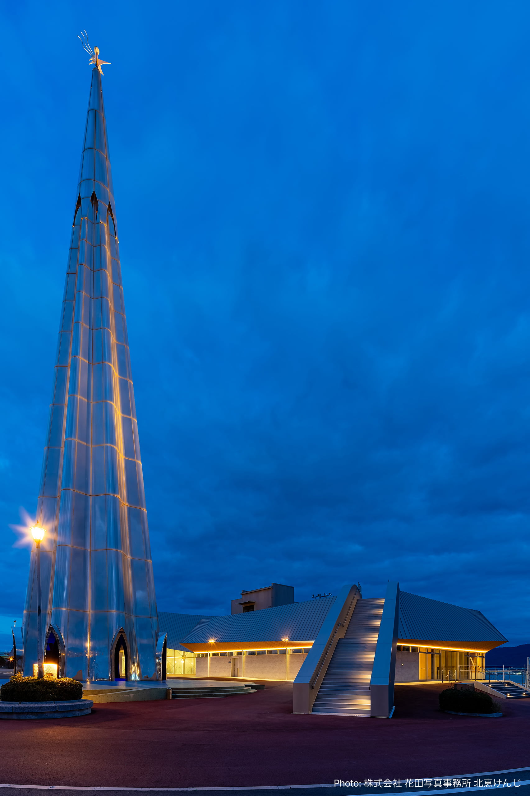 建物全体は、平和の象徴である鳩の翼や波のうねりをイメージしたデザインとしている。