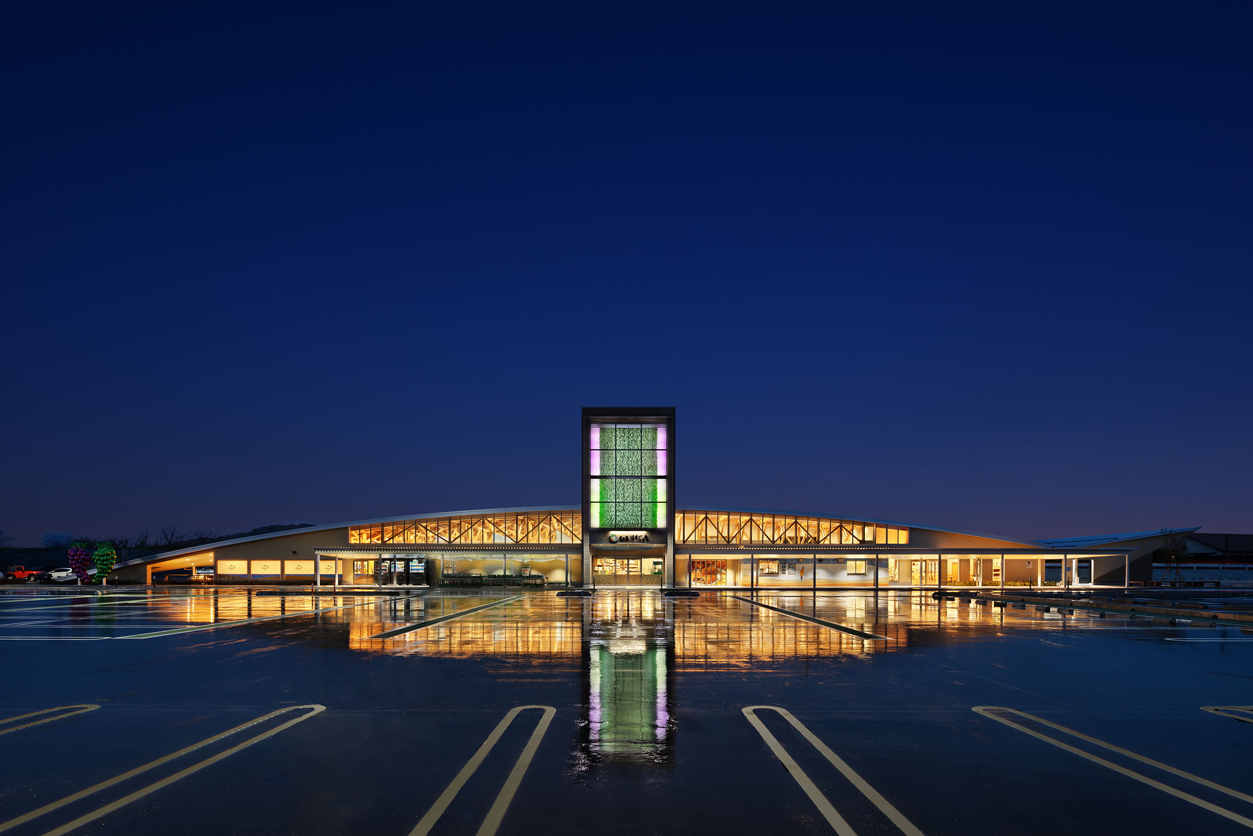 道の駅ほうじょうは北条砂丘の自然や地元の特色のある農産物から連想される大地につながる緑ゆたかな曲線とし、オリジナリティがあふれ、人々を包み込むような優しさを感じる道の駅としている。