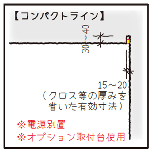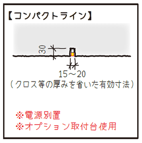 器具幅は 23mm で、なんとビックリ「 器具内での結線が可能 」で「 電源装置は内蔵 」。