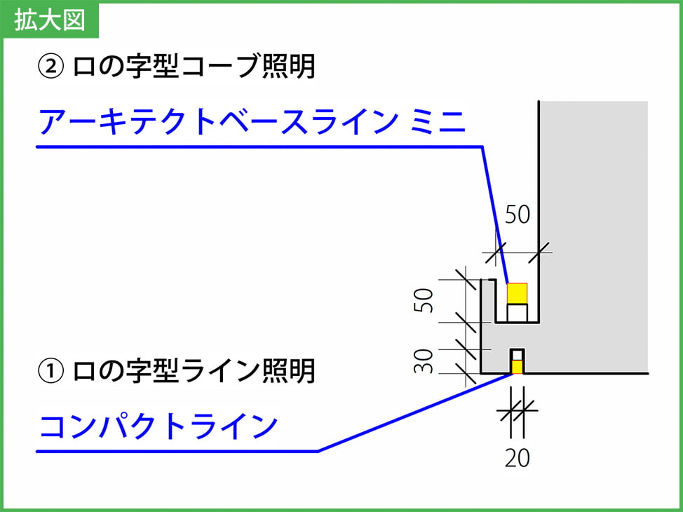 ライン照明のロの字型は、おさまり寸法がとてもシビアです。