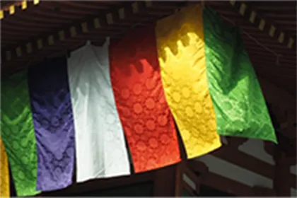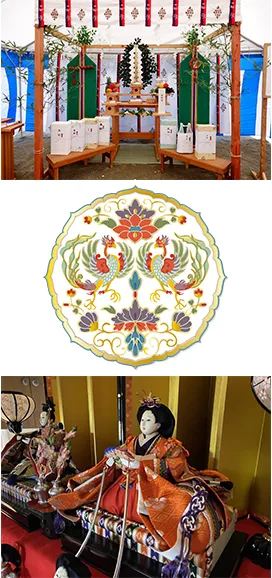 祭壇の前に置かれた『 几帳幕 』や、ひらりと舞う『 花鳥文様 』
