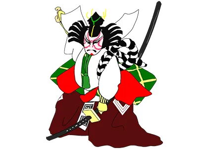 歌舞伎では、場面が変わりぎわに役者が『 見得 』を切る。